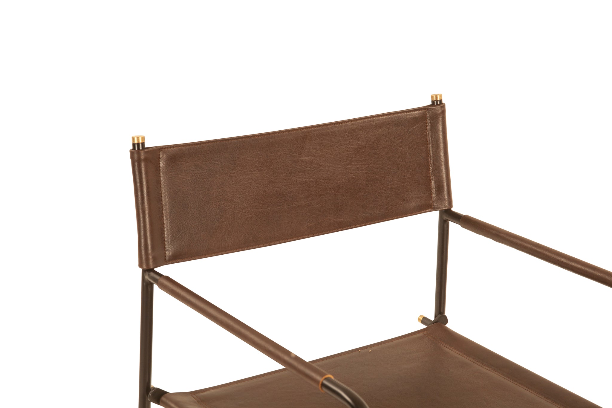 The Lund Chair Collection is a stylish and versatile set of chairs that features braided buffalo leather and sleek iron frames. In the styling of a classic director's chair, this chair is accented by buffalo leather which adds a touch of texture and sophistication to the design, while the reclaimed iron frames provide a sturdy and durable base.