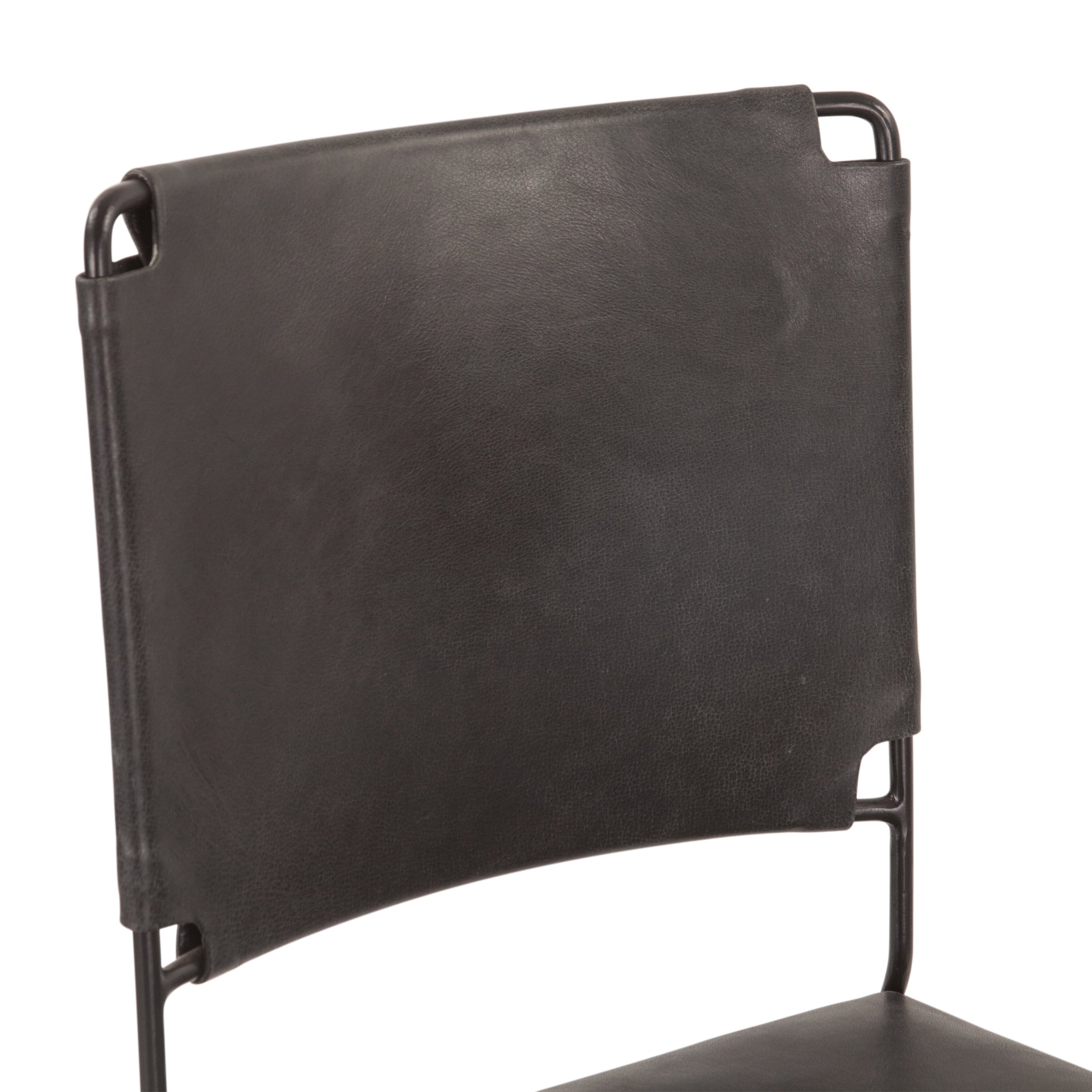 The Melbourne collection fuses industrial modern and mid-century designs. This collection features materials like solid mango wood and welded iron, hard leather and soft suedes, all combined to create distinct looks that appeal to the modern eye. This beautiful yet simple dining chair has a black reclaimed iron frame with sled style legs, enhancing the mid-century modern look of the piece. The seat and seat back are upholstered in buffalo leather, and the seat includes a cushion for comfort and support. This sleek dining chair is pre-assembled and made with materials of the finest quality, making it an effortless addition to any home.