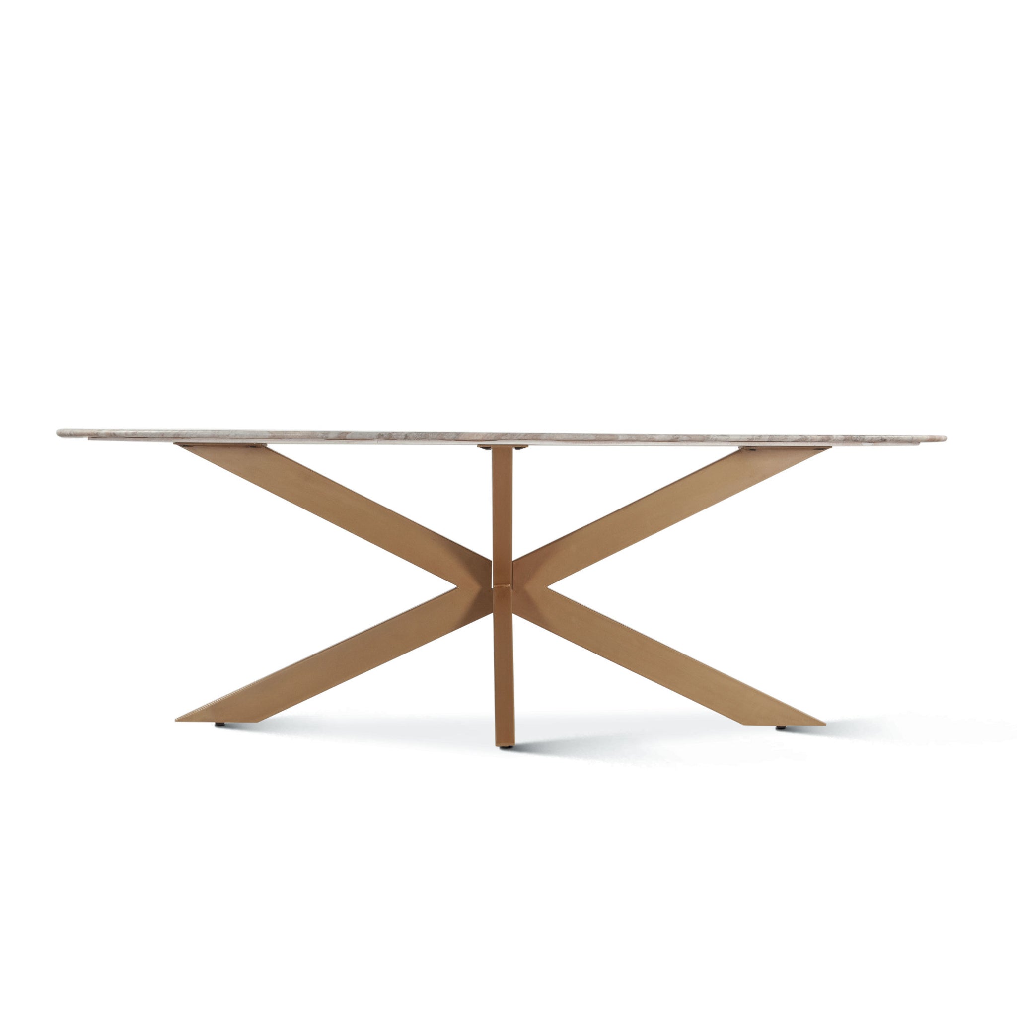 Pasadena 70" Oval Dining Table in Sawar Marble and Iron with Antique Gold Finish