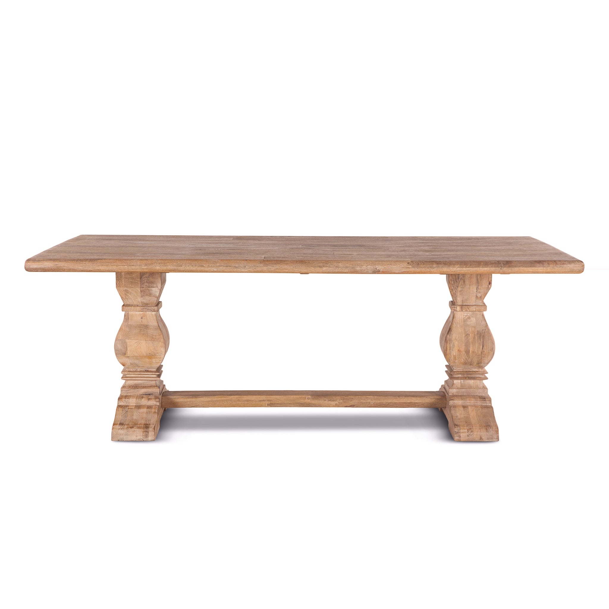 Surrounded by the familiar comforts of coastal charm and heirloom-quality construction, the Pengrove collection is crafted from solid mango wood. The beautiful furniture of this collection features frame-and-panel construction, over-sized styling, carved pedestals and a beautiful, antique oak finish. This beautiful 84-inch rectangle dining table with antique oak finish pairs perfectly with any reclaimed wood or mixed media dining room decor. The heirloom quality construction enhances the durability and beauty of the table, while the presence of natural wood knots and distressed markings bring out the distinct characteristics of this wood, making no two pieces the same. Perfect for both casual and formal dining, this table can fit 8 seats comfortably making it an excellent addition to any kitchen or dining room. The antique oak finish of the wood adds to the longevity of the piece, providing maximum moisture and scratch resistance for many years to come.