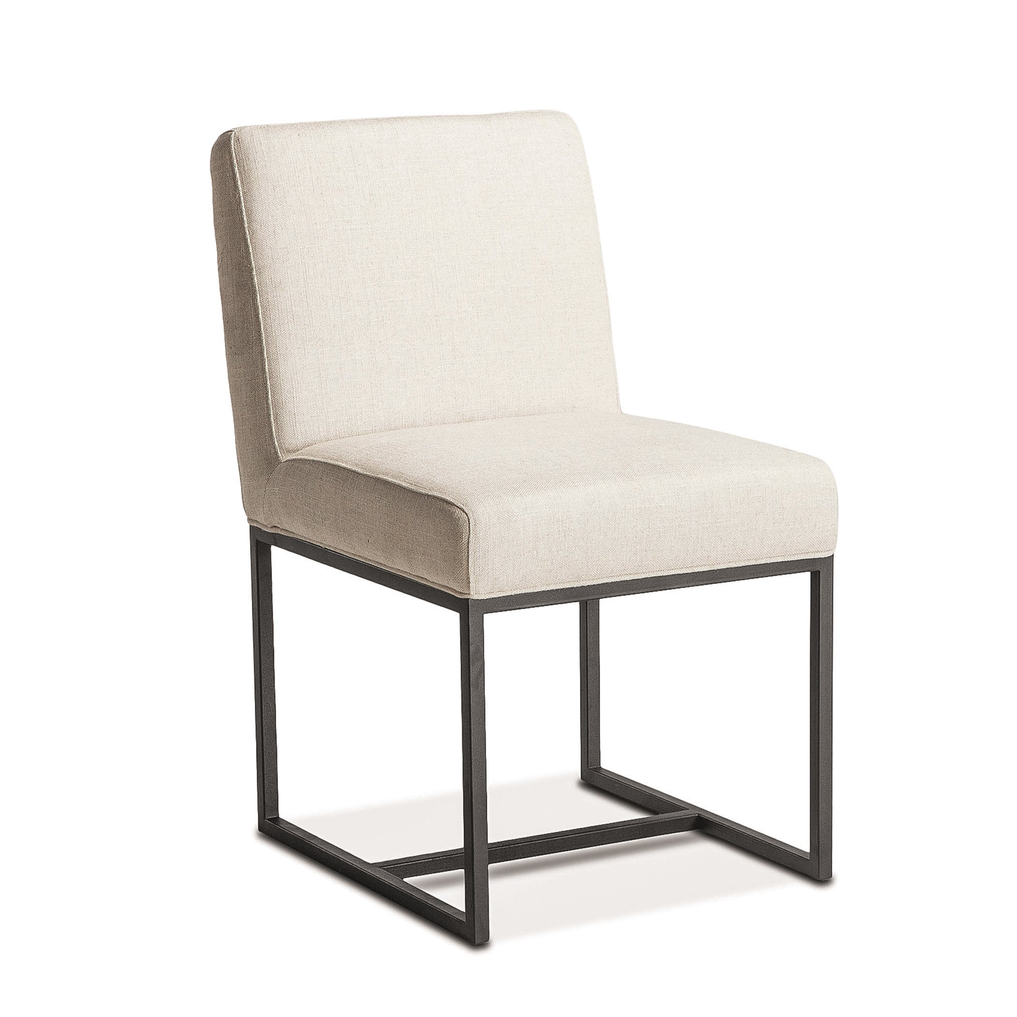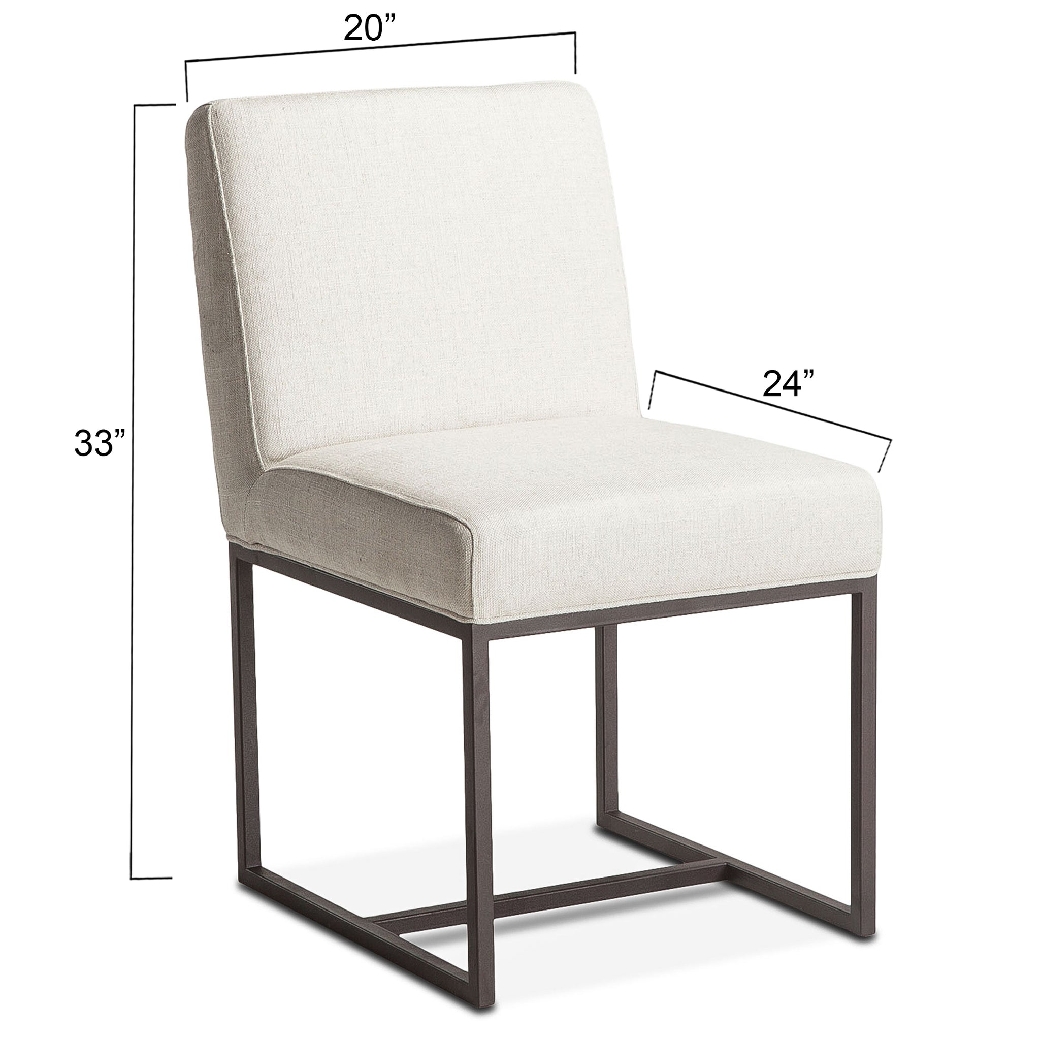 Breathe new life into your dining room decor with this gorgeous upholstered dining chair. The Rebel collection of chairs adds comfort and modern elegance to any dining or seating area. Each chair in this collection has a modern style solid wood frame, and boasts iron legs with an antique zinc finish. This standard dining chair is upholstered in a beige colored linen, cotton and polyester fabric blend, making it a perfect match for any decor style. This pre-assembled dining chair is ready-to-use, and with its ability to blend with multiple different styles, it will be an effortless addition to your home or office.