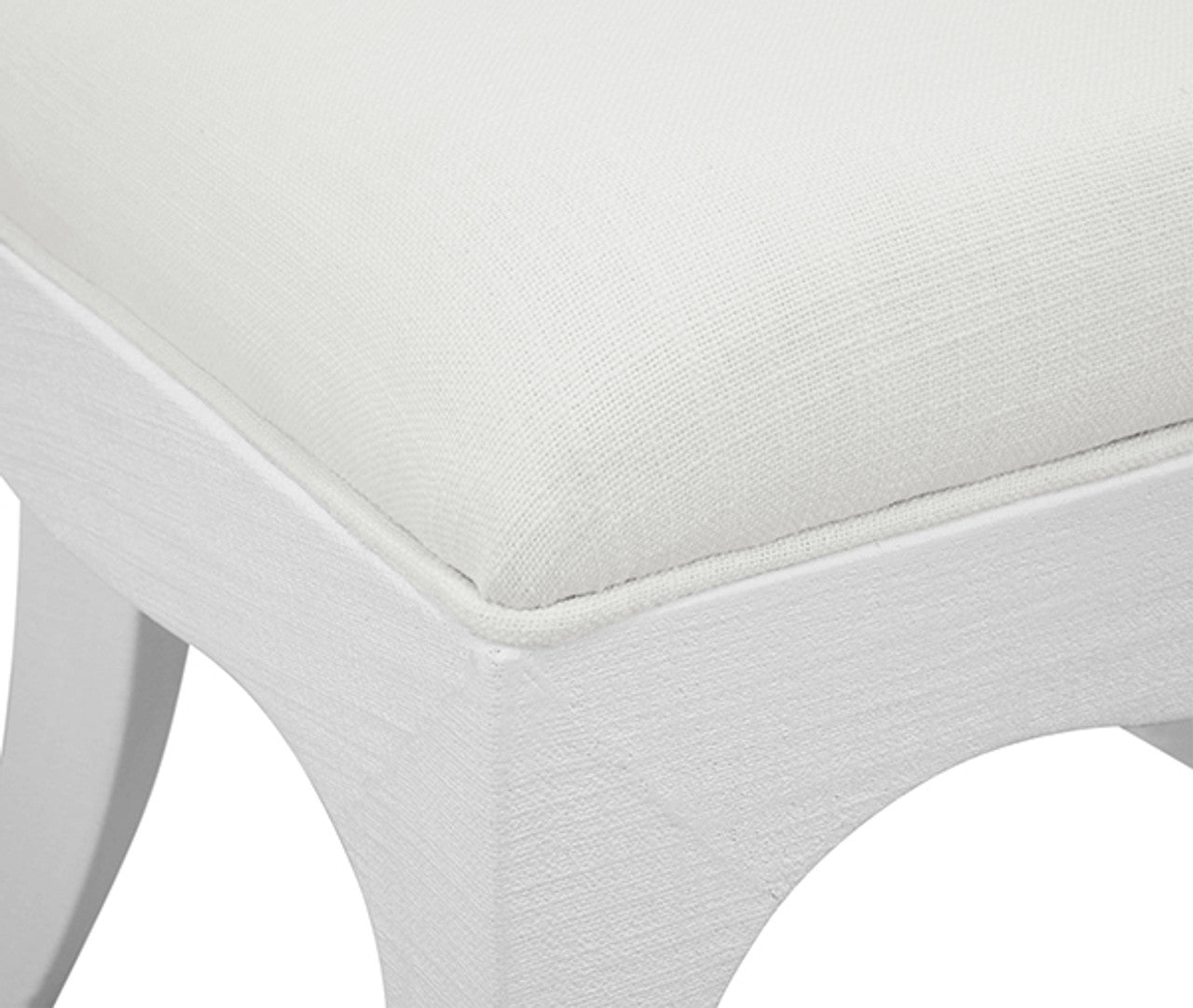 Graceful curves and soft textures define the Sadie WH dining chair, designed with both comfort and everyday use in mind. Upholstered in performance white linen, the generously cushioned seat is framed in textured white linen for a subtle touch of color. A satin brass ring on the back isn’t just decorative — it offers a convenient way to pull the chair out with ease, helping to keep the fabric clean. Perfect for dining tables and daily gatherings, this chair combines refined style with lasting comfort.