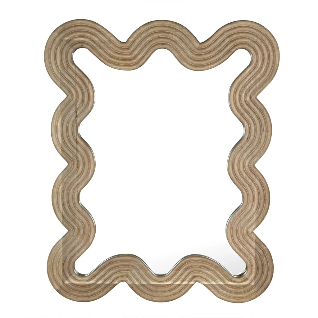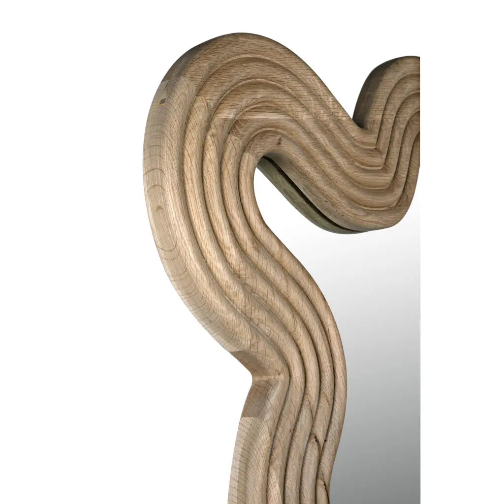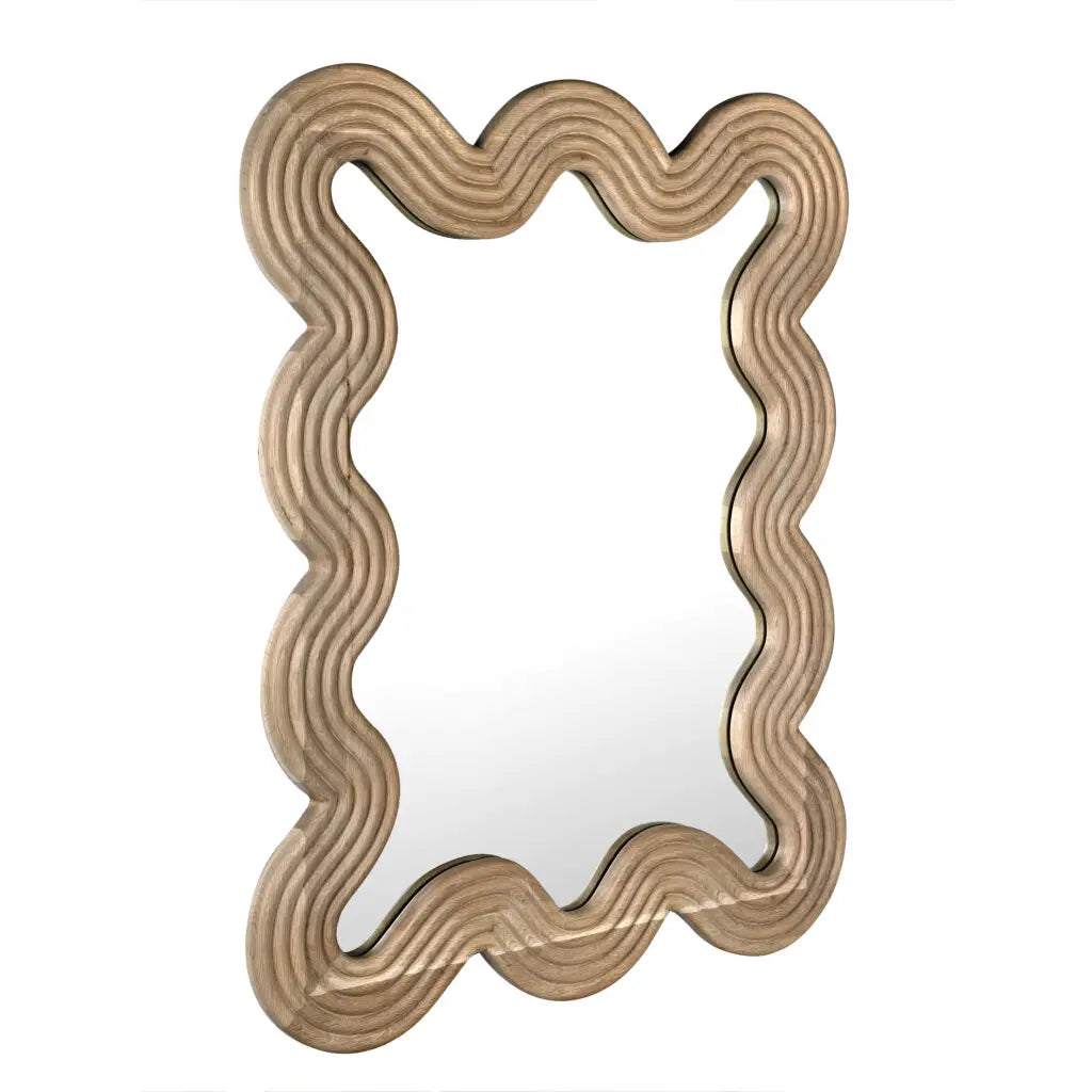 The Ozark Mirror Furniture is a large-scale, sculptural wall mirror known for its playful and sophisticated wavy frame. Handcrafted from White Oak, it features an undulating design that adds a dynamic sense of movement and artistry to modern or eclectic living spaces.