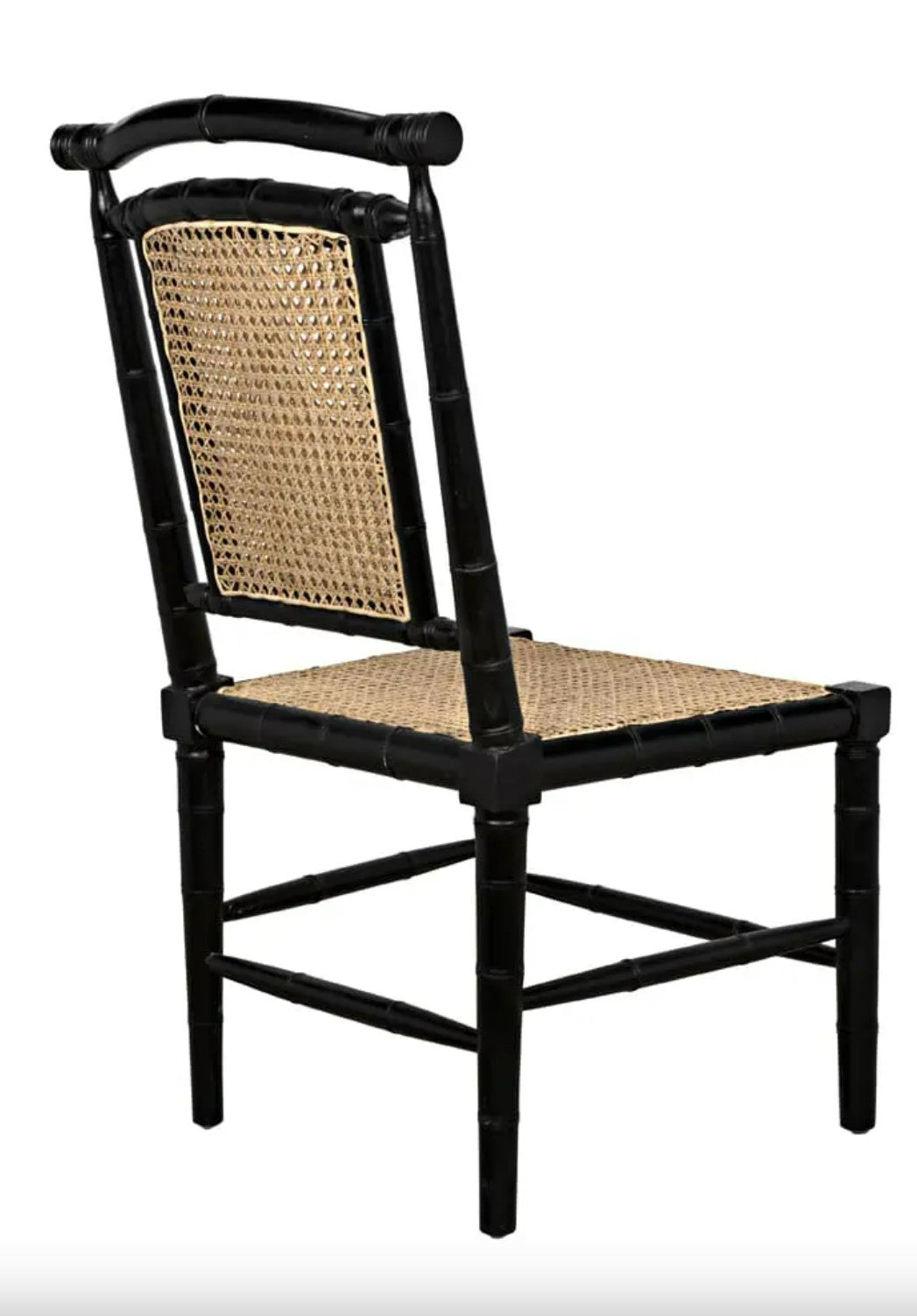 Hand-carved mahogany in a classic bamboo motif complements the bamboo seat and back of this classic colonial inspired armchair. Available in two finishes, deep brown and hand-rubbed black.