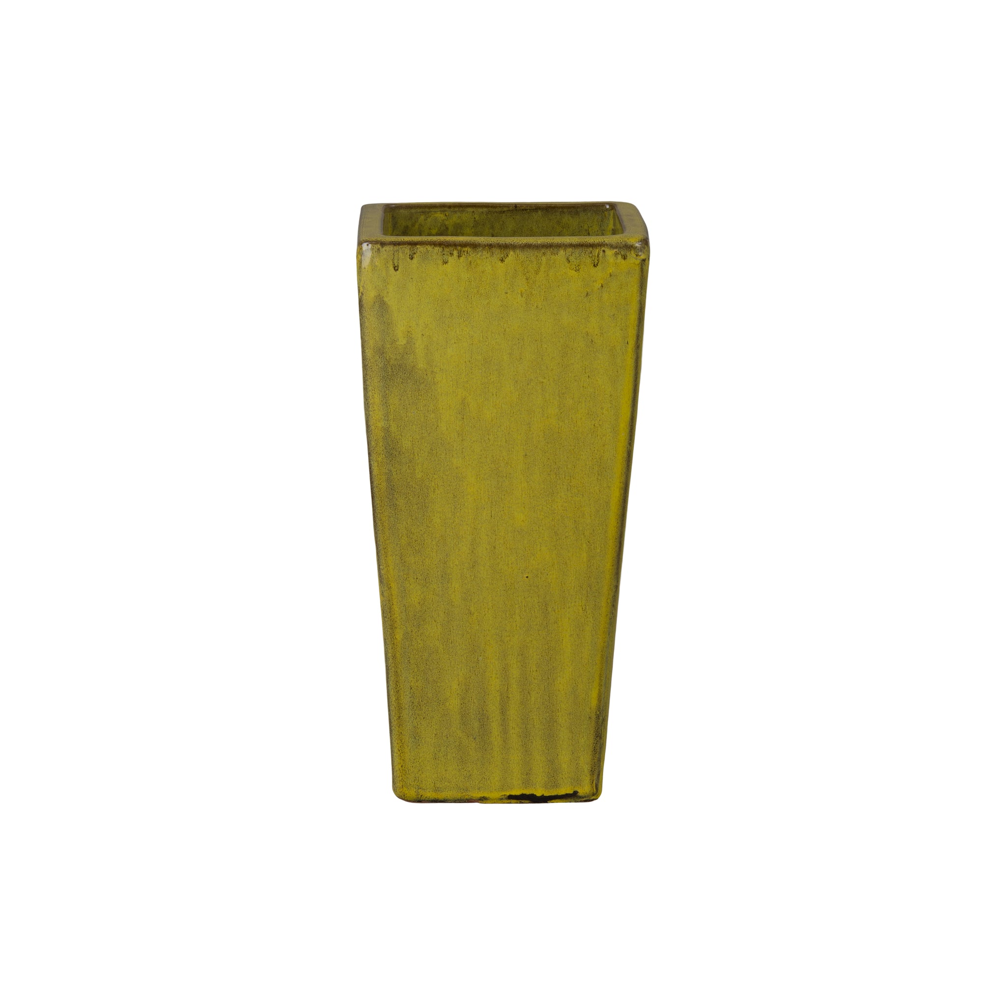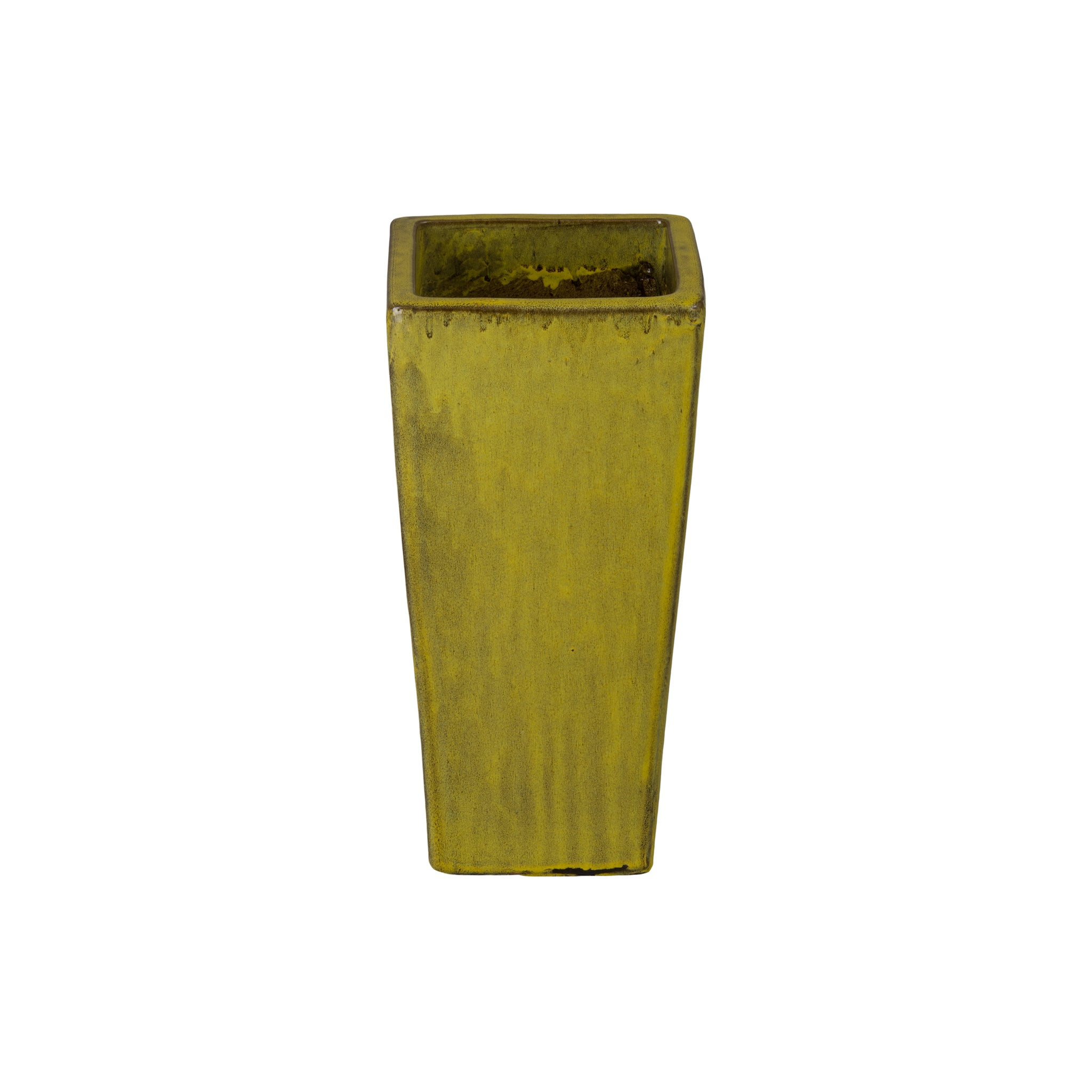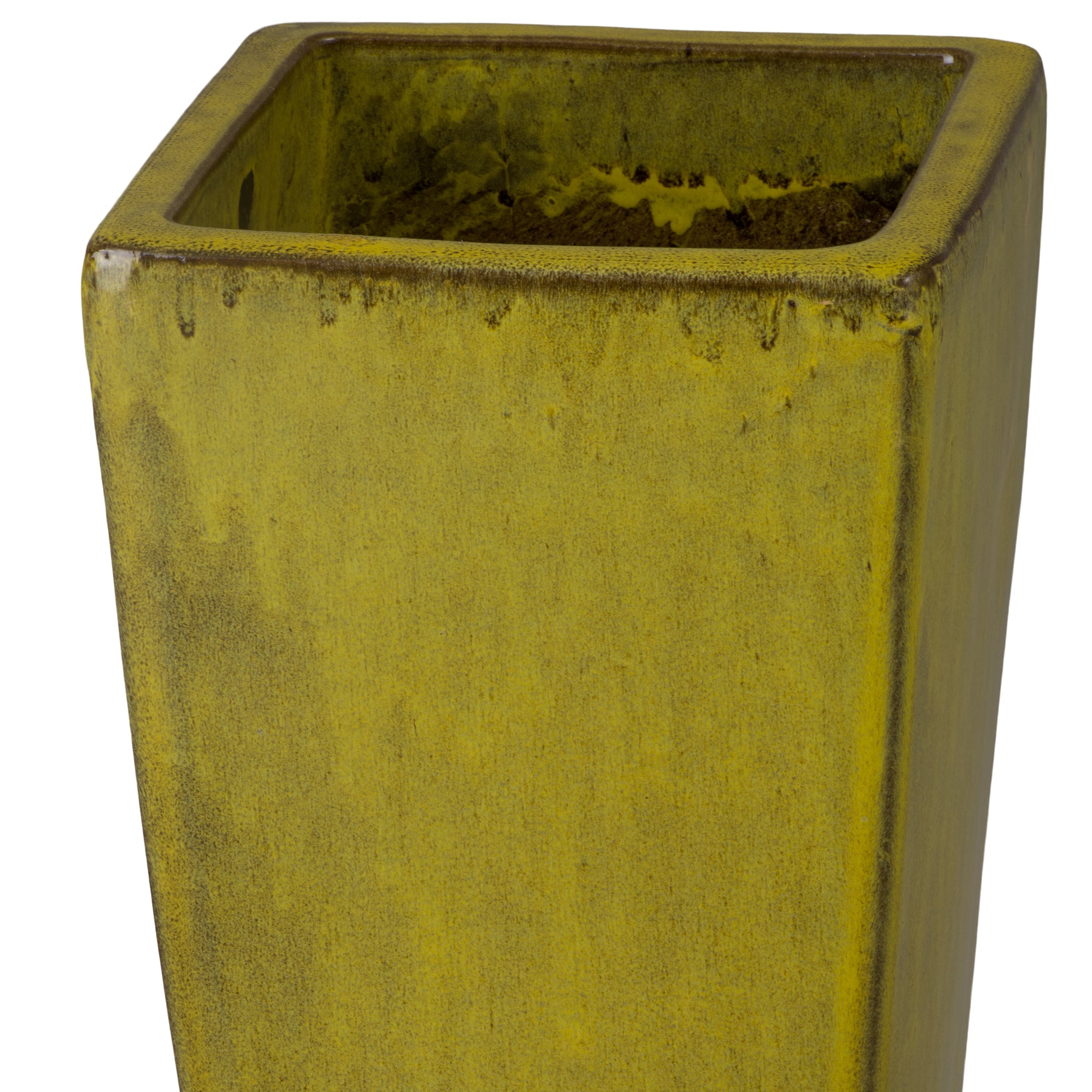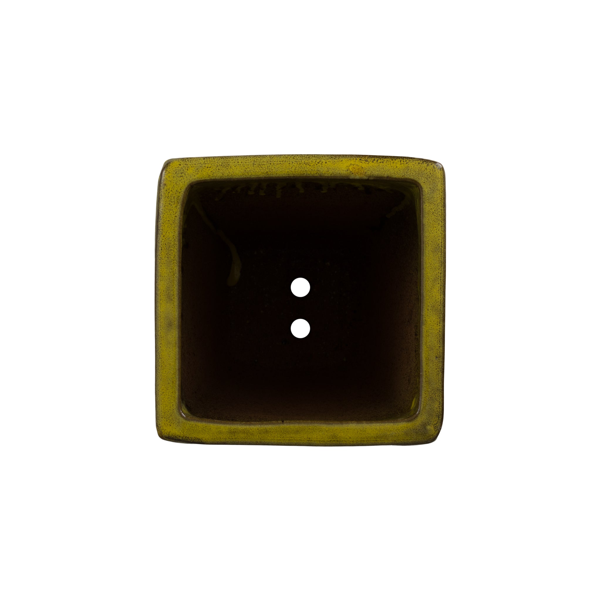 This Crisco square planter is crafted of ceramic with a tropical yellow glaze. Suitable for outdoor and indoor use. Adds color and texture to your home or garden.