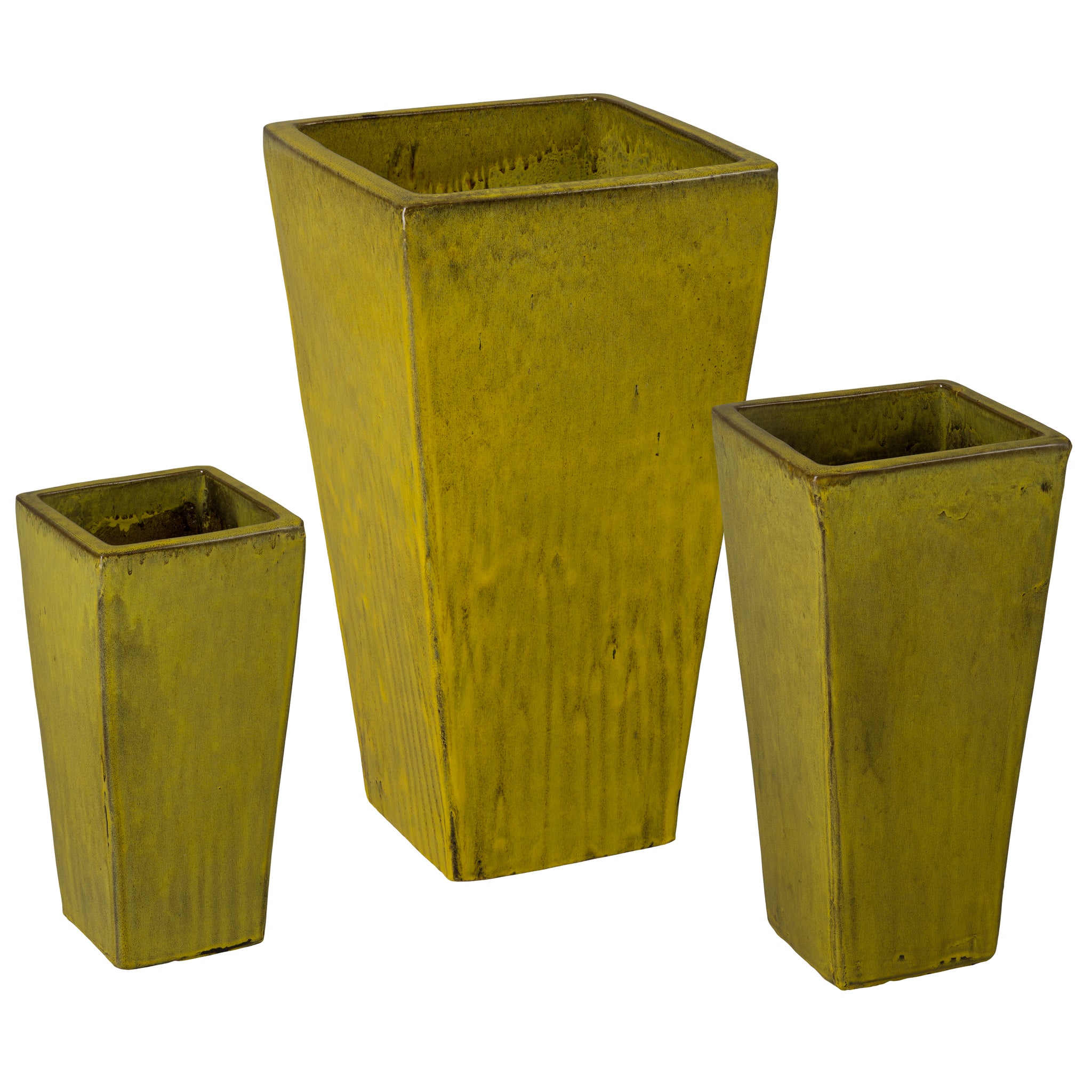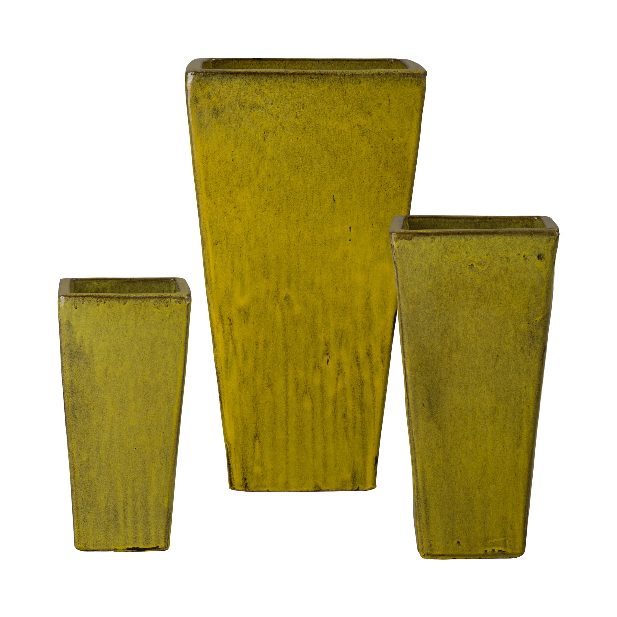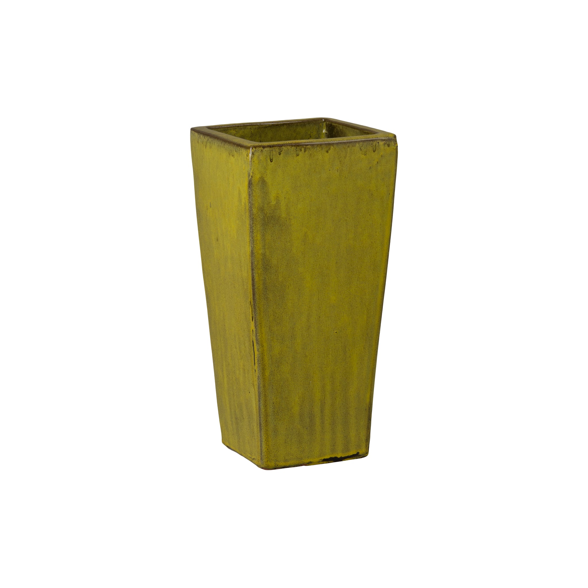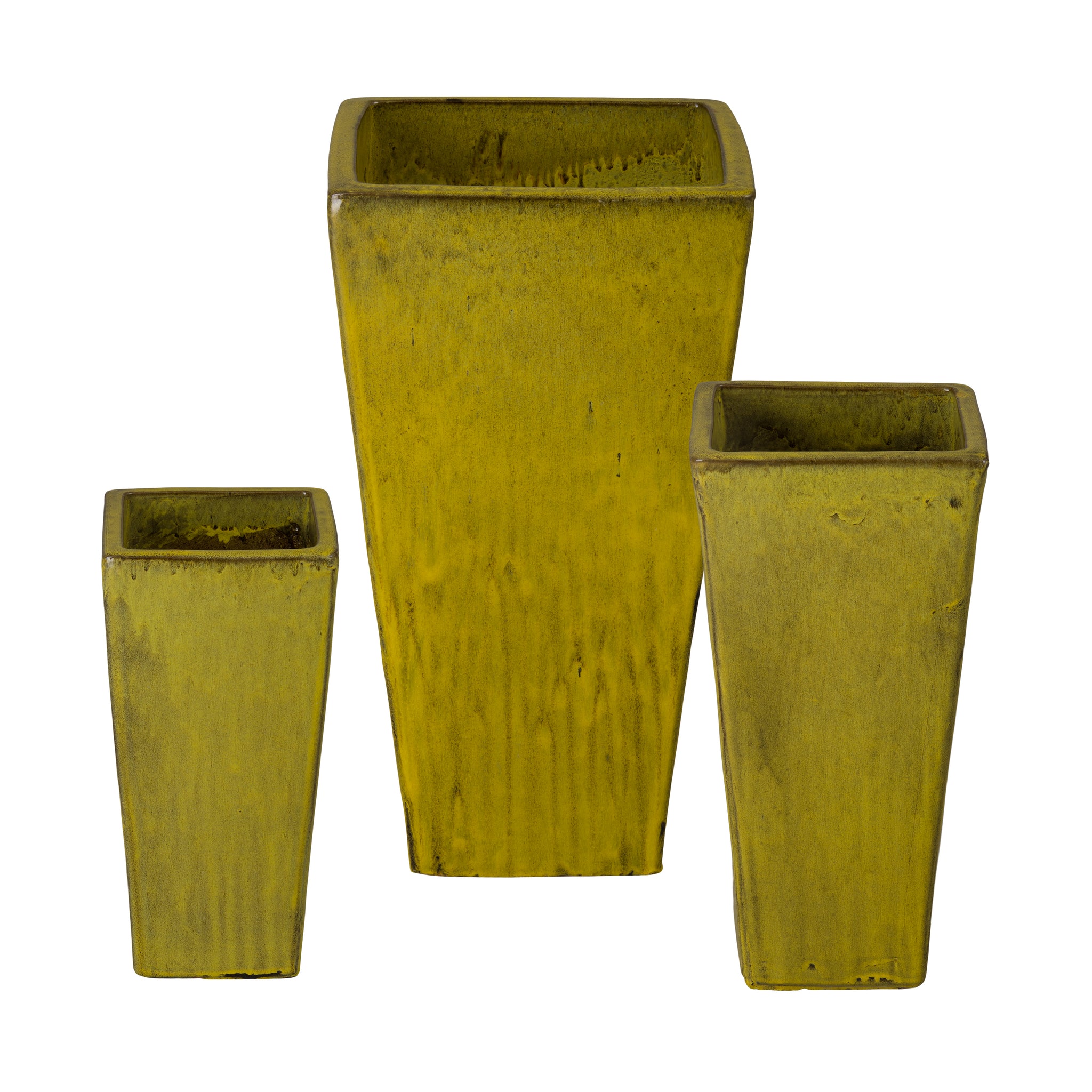 This Crisco square planter is crafted of ceramic with a tropical yellow glaze. Suitable for outdoor and indoor use. Adds color and texture to your home or garden.