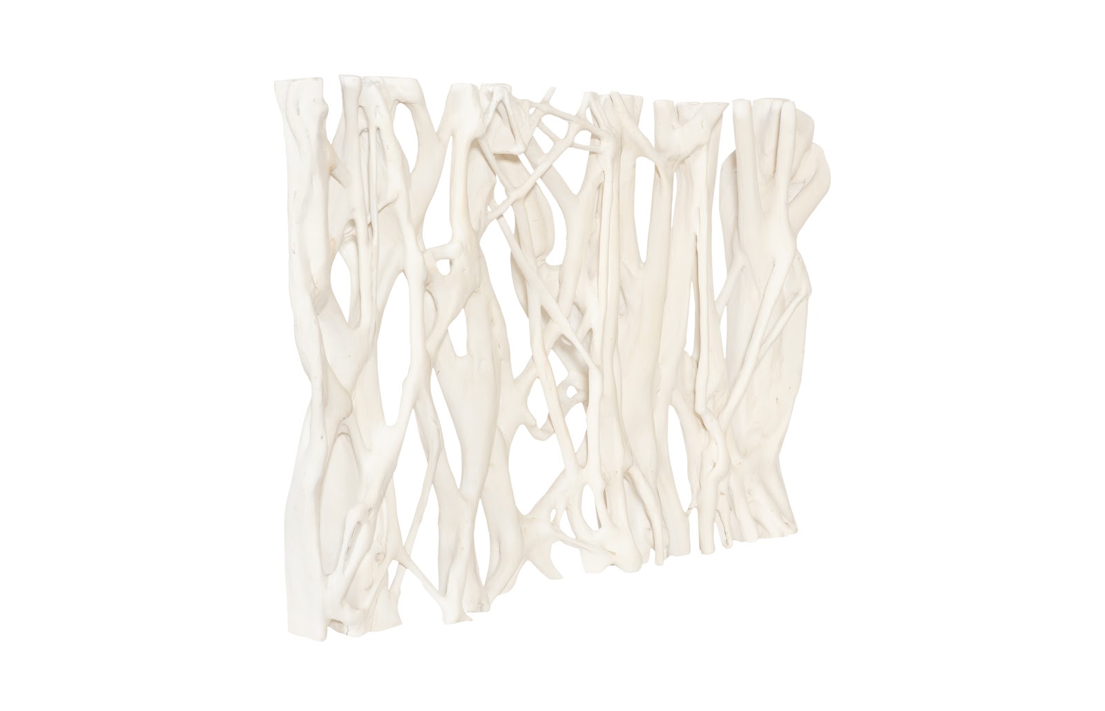 Our best-selling Entwined floor sculptures have inspired a striking new evolution: the Cast Entwined Wall Root. This dimensional wall sculpture captures the same organic flow of interwoven roots, now reimagined as a lightweight, repeatable wall piece. Hand-finished in a soft faux bleached tone, it adds airy texture and modern naturalism to any space—making your walls anything but flat.