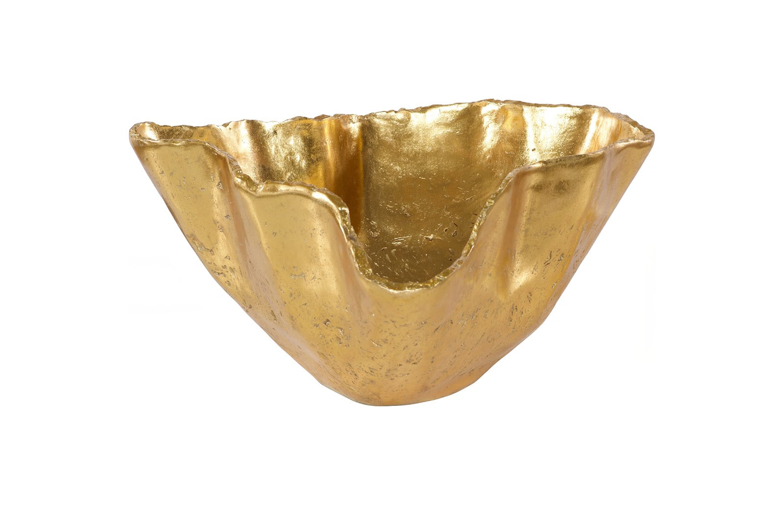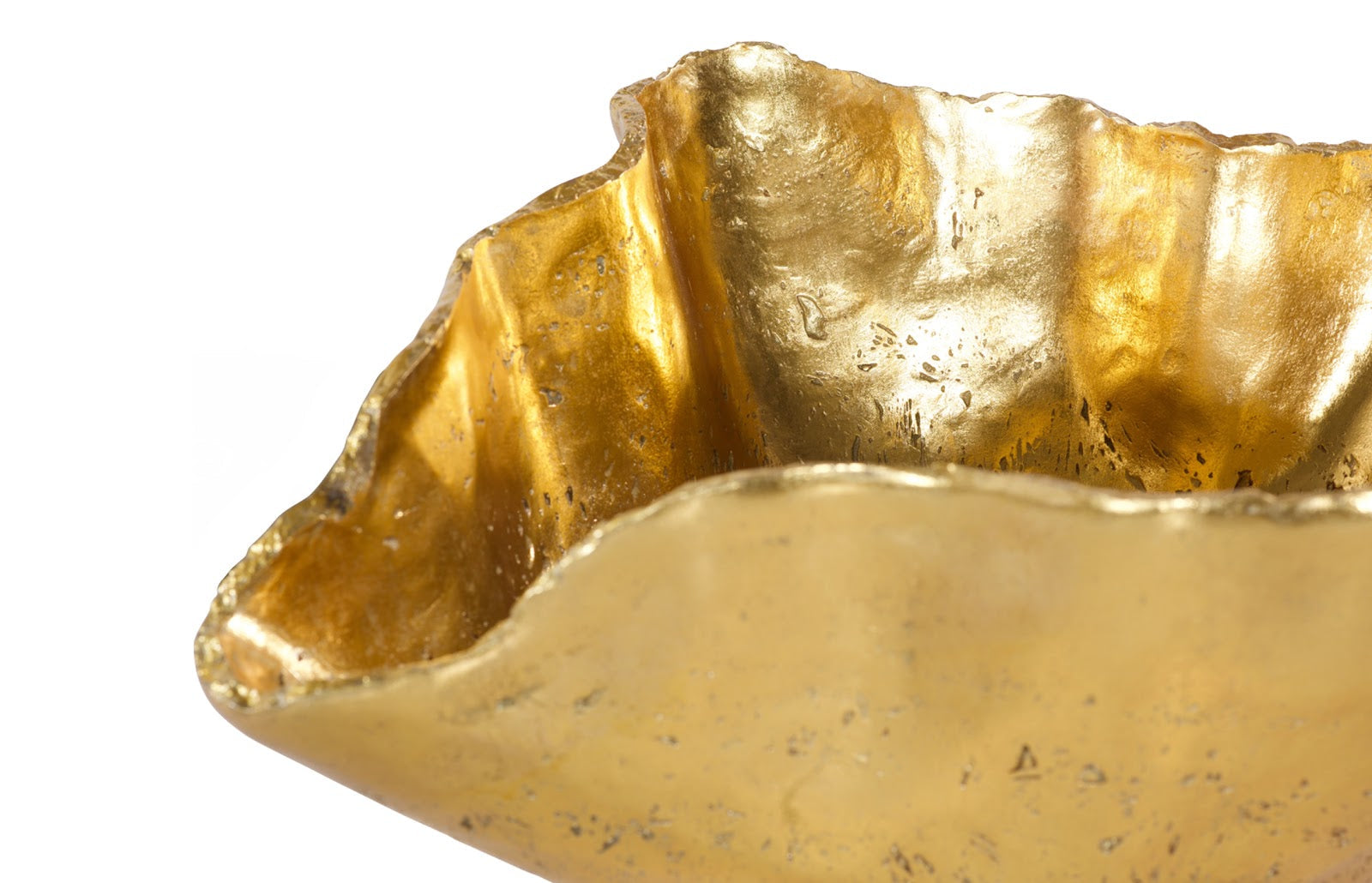 The Cast Onyx Wall Bowls add a golden twist to the originals. Crafted from resin and expertly molded to look like onyx that took eons to form, these bowls are topped with a brilliant gold leaf finish—proof that nature and artistry make a perfect pair.A shining example of our modern organic style—because who says you can’t outdo Mother Nature?