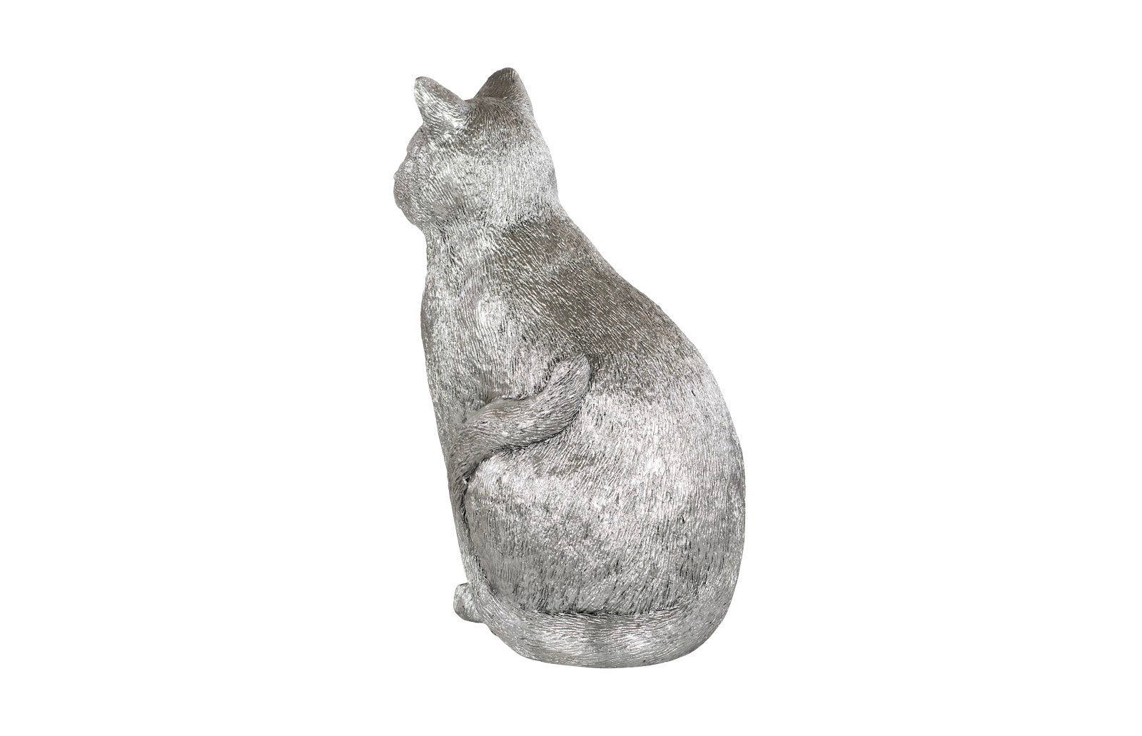 Cat Sitting Sculpture, Silver Leaf