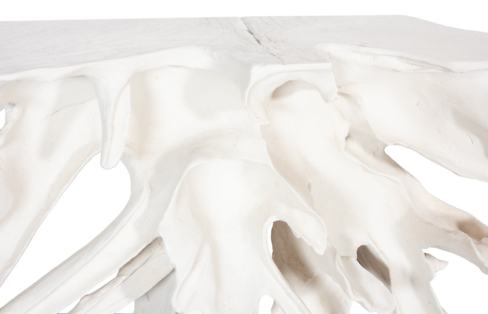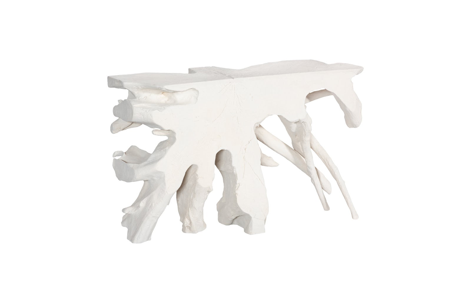 The Cast Naturals Collection highlights our skills at taking an innovative material and making it feel as if it sprang from Nature. The Cast Teak Root Console Table is made of composite that has been molded to look like a piece of harvested wood that took nature eons to create, then finished in White Stone. The advantage of having a console table made from this durable material is that it will long outlast its natural counterparts pulled from the forest floor.