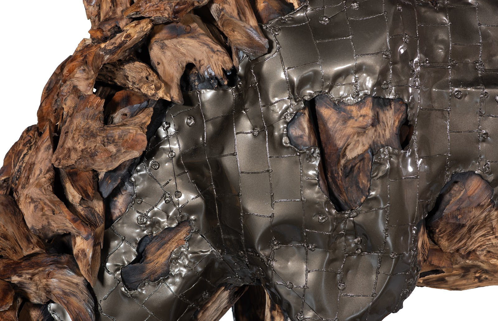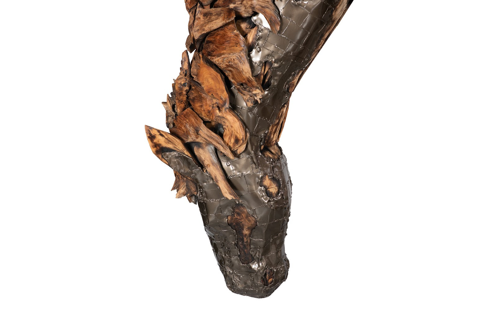 The Armored Mustang Grazing Horse Sculpture was envisioned by Timbul Raharjo, an award-winning artist and sculptor from the village of Kasongan in Yogyakarta, Indonesia. He is well-known for large-scale masterpieces like these decorative sculptures that are made from wood and aluminum. Timbul works with all types of metals, including aluminum castings, to make dresses, humans, and animals. Each piece is hand-sculpted and, after a thorough polish, the sculptures come to life convincingly.