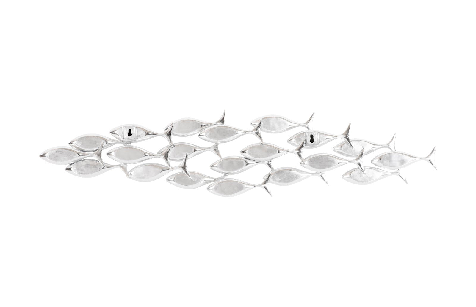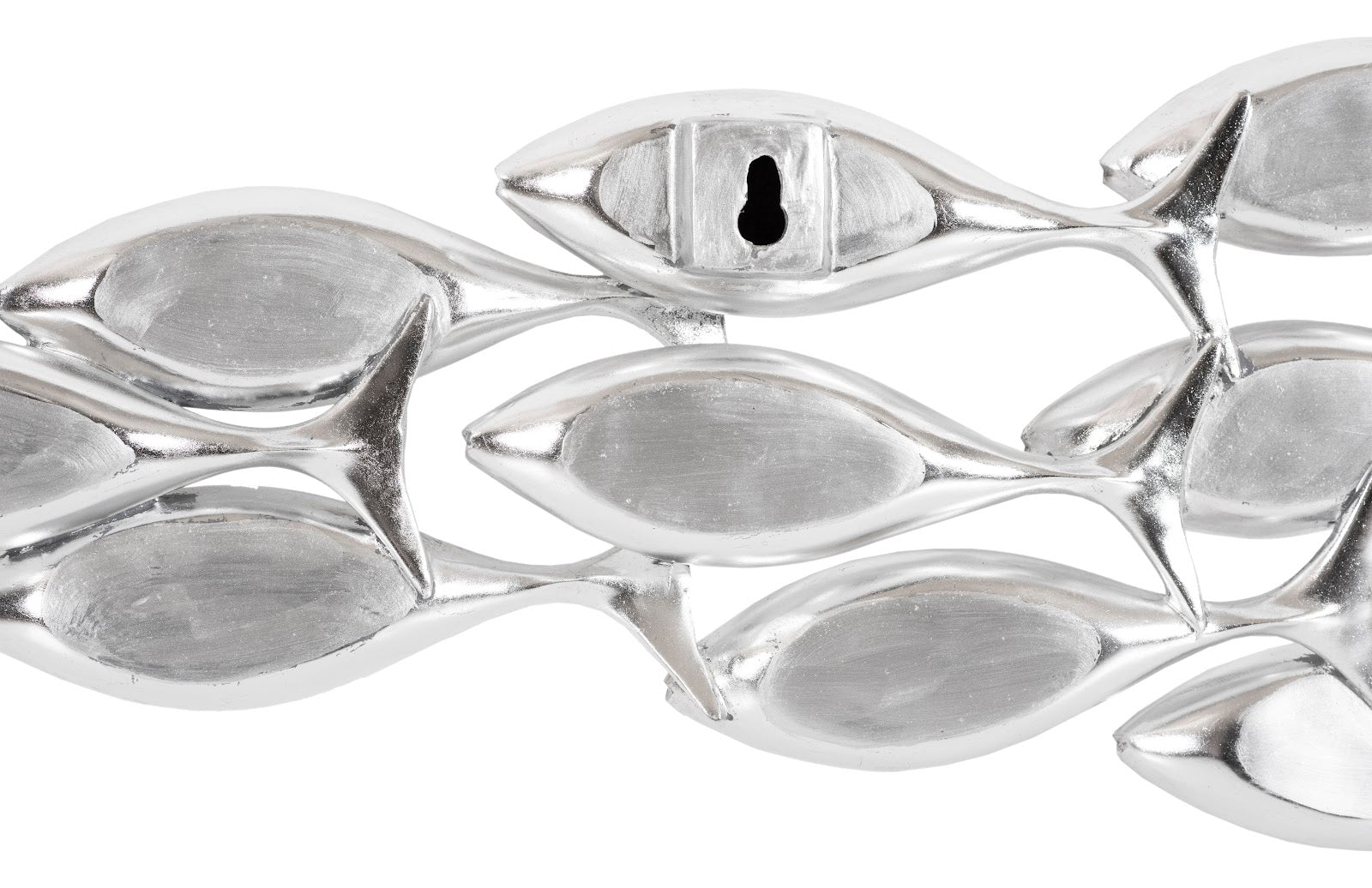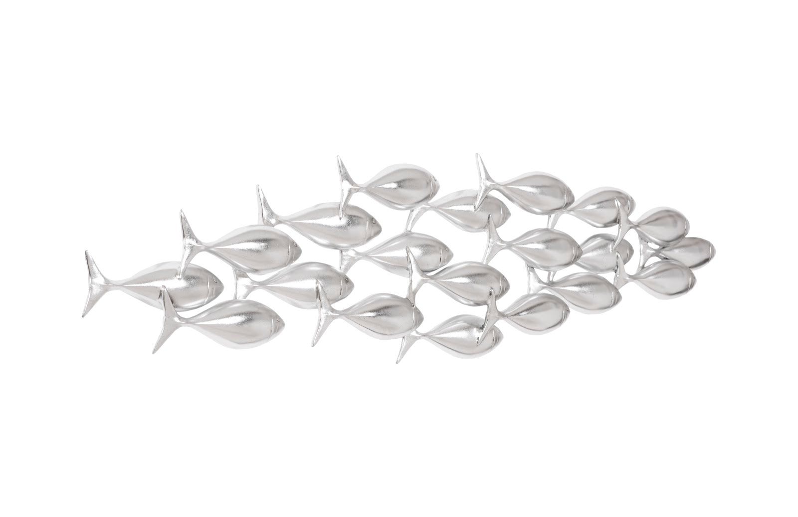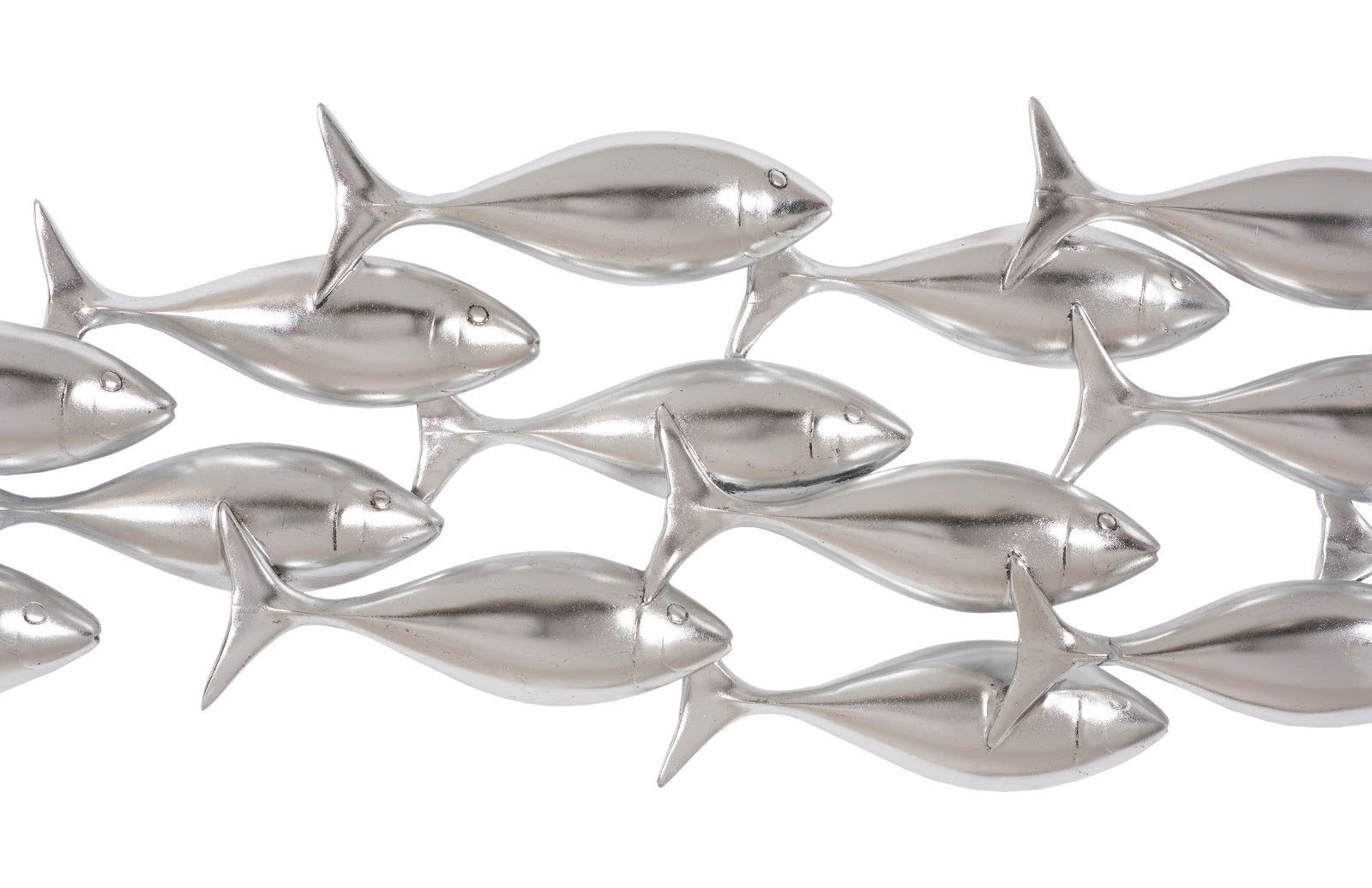 A school of fish is greater than the sum of its parts, accomplishing more together than any single fish could do alone. This demonstration of teamwork and unity inspired the Silver School of Fish Wall Art from Phillips Collection. Made from artisan-grade resin and finished in silver leaf, this playful piece of dimensional wall decor features twenty fish hanging from various lengths from the wall that lends an element of depth to the piece.