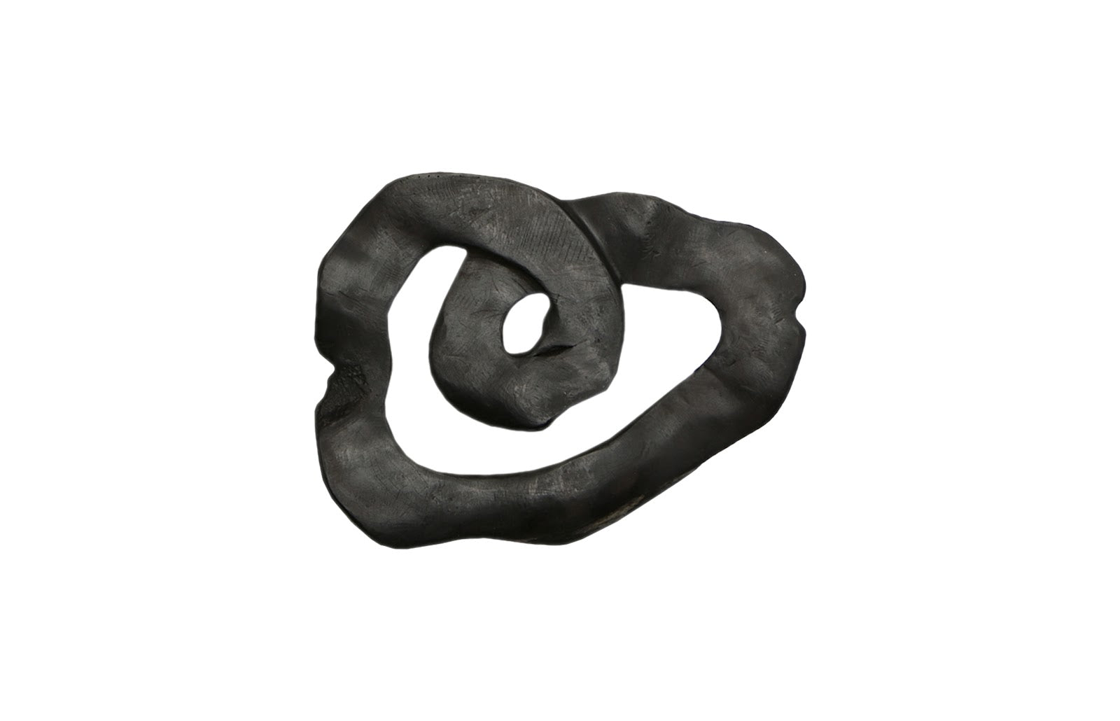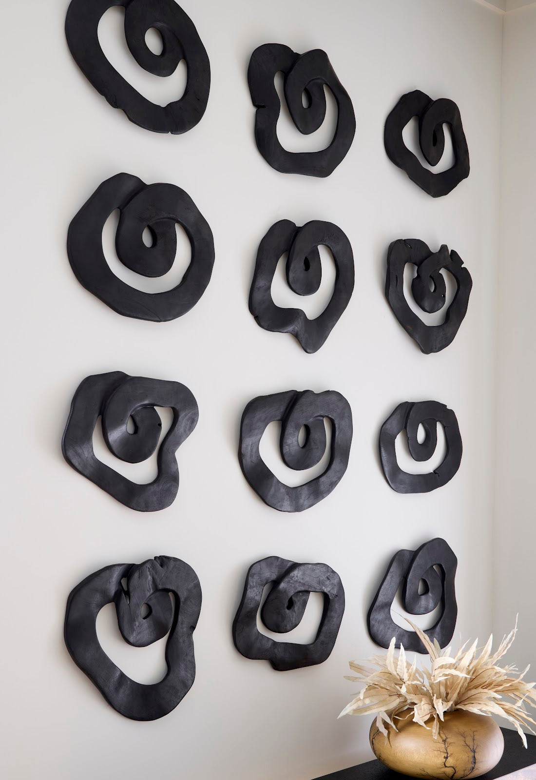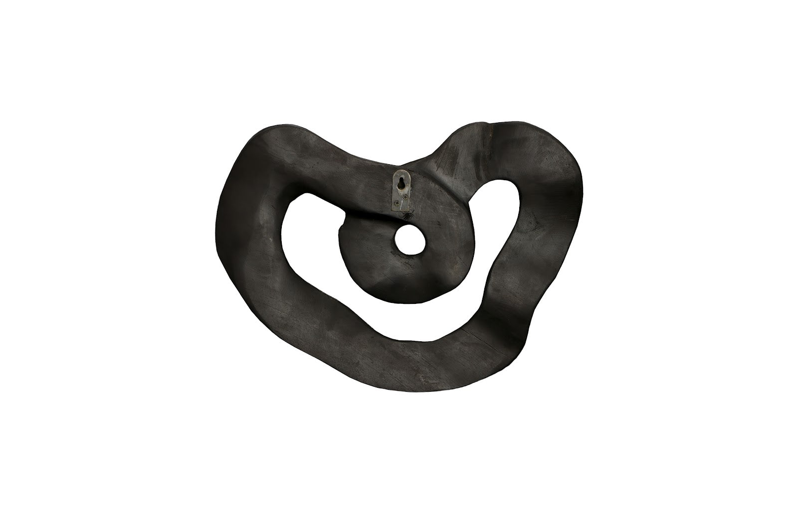 Childlike in its rendering, the Swirl Black Wall Tile will bring a hint of whimsy to a room. This round teak wall tile is lively when hung singly but group them in an arrangement and watch them gain even greater felicity. The warmth of the teak and the powerful woodgrain on the surface of the circlet would normally make this wood sculpture traditional in style but the clean lines of the rings bring it a modern organic vibe for which Phillips Collection is known.