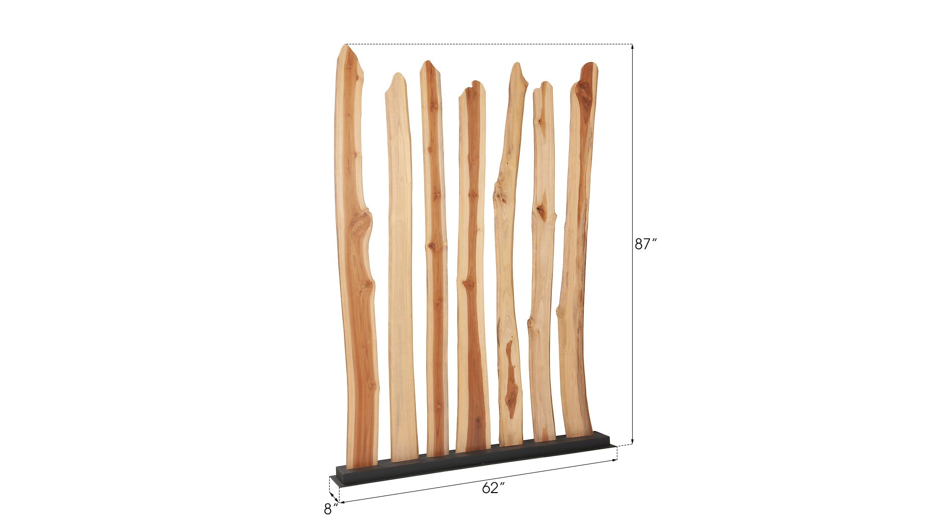 Chamcha wood is a fast-growing tree that is prized for its richly figured grain and distinct sap line. It is characteristic for these trees to grow crooked and with low and heavy branching. This allows for some of the most interesting and organic forms, which we cherish at Phillips Collection. The Wood Screen is made of real wood and works well as a sculptural accent or space divider.