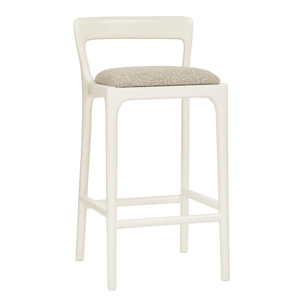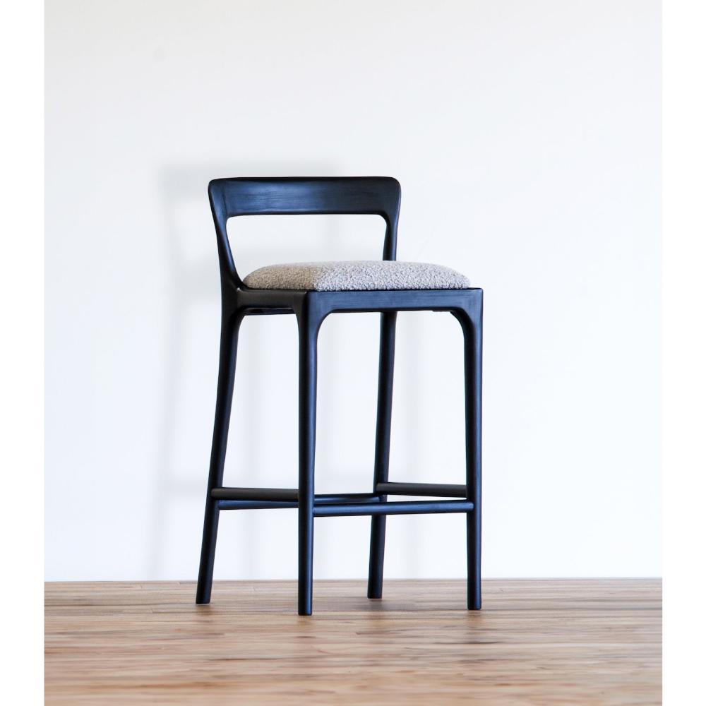 This beautiful and well-proportioned barstool is the perfect complement to any room. Choose Boucle or Faux Leather upholstery for the cushion, for versatility and easy care. Available in all wood finishes and upholstery options.