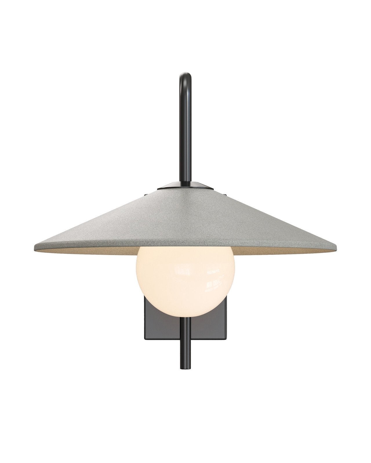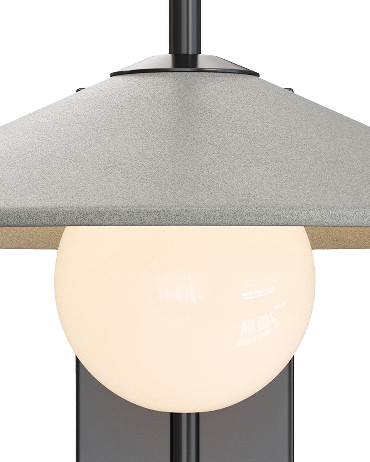 The Bothy Outdoor Wall Sconce has a shade made of cast concrete with a subtle pebbling in the material to bring it a modern farmhouse appeal. Because it is wet-location tested and extends from metal hardware in a black powder-coated finish, the Bothy is ideal for lighting patios, loggias, and porches. The milk-glass globe creates a glow on the interior of the shade and the concrete is polished on the shade’s edges after the casting is set for a sophisticated smoothness.