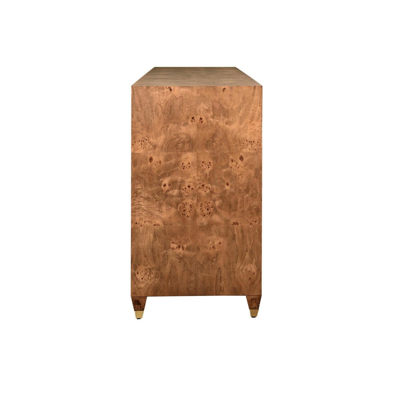 Mulligan Four Door Buffet With Satin Brass Horsebit Inspired Hardware And Foot Caps In Dark Burl Wood