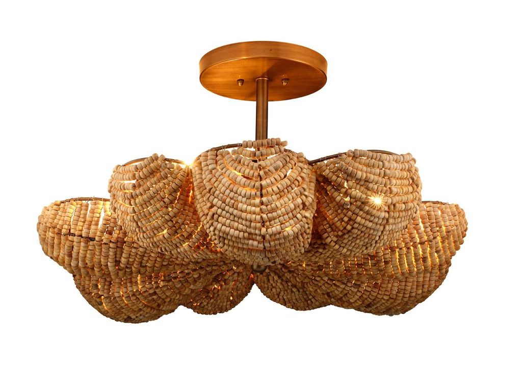 Anguilla Semi-Flush Mount in Natural Wood Beads