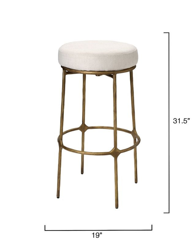 With its hand-forged iron base and softly upholstered seat, this stool brings timeless elegance and comfort to any kitchen or bar. The performance fabric ensures long-lasting durability, while its tailored lines and gentle proportions create an inviting silhouette. Seamlessly blending with both modern and traditional interiors, it’s perfect for gathering, dining, or lingering over conversation in a warm, stylish setting.