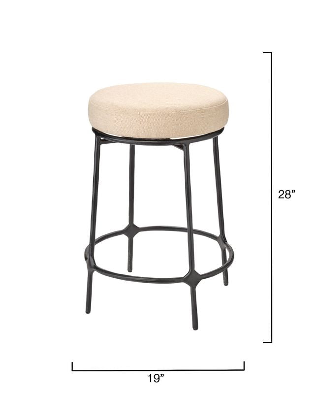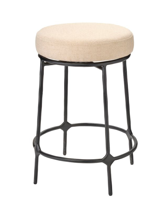 With its hand-forged iron base and softly upholstered seat, this stool brings timeless elegance and comfort to any kitchen or bar. The performance fabric ensures long-lasting durability, while its tailored lines and gentle proportions create an inviting silhouette. Seamlessly blending with both modern and traditional interiors, it’s perfect for gathering, dining, or lingering over conversation in a warm, stylish setting.