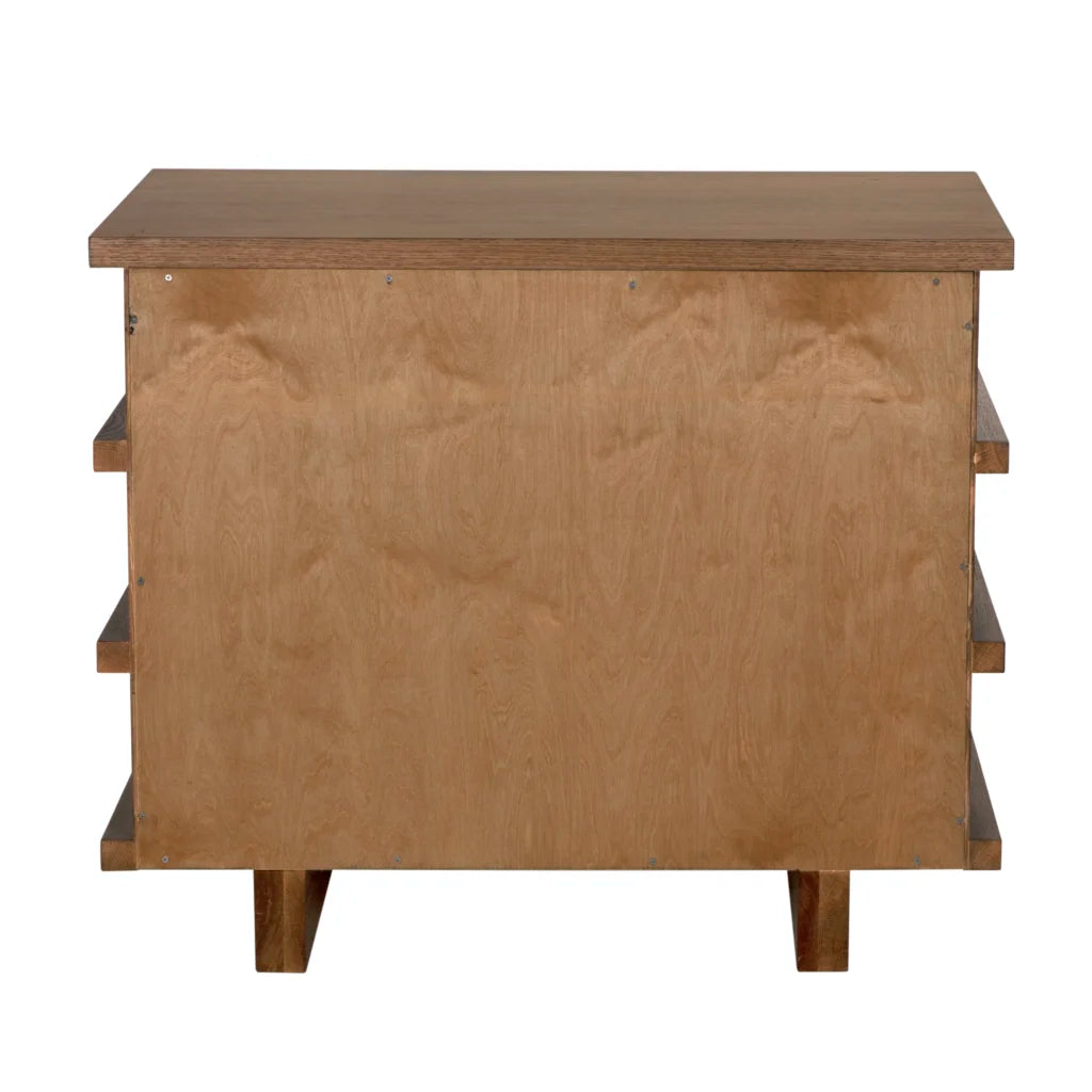 The Bergamot Dresser in Fawn (Small) is a popular piece known for its organic, minimalist aesthetic. It typically features a textured, light-oak or "fawn" finish that highlights the natural grain of the wood.