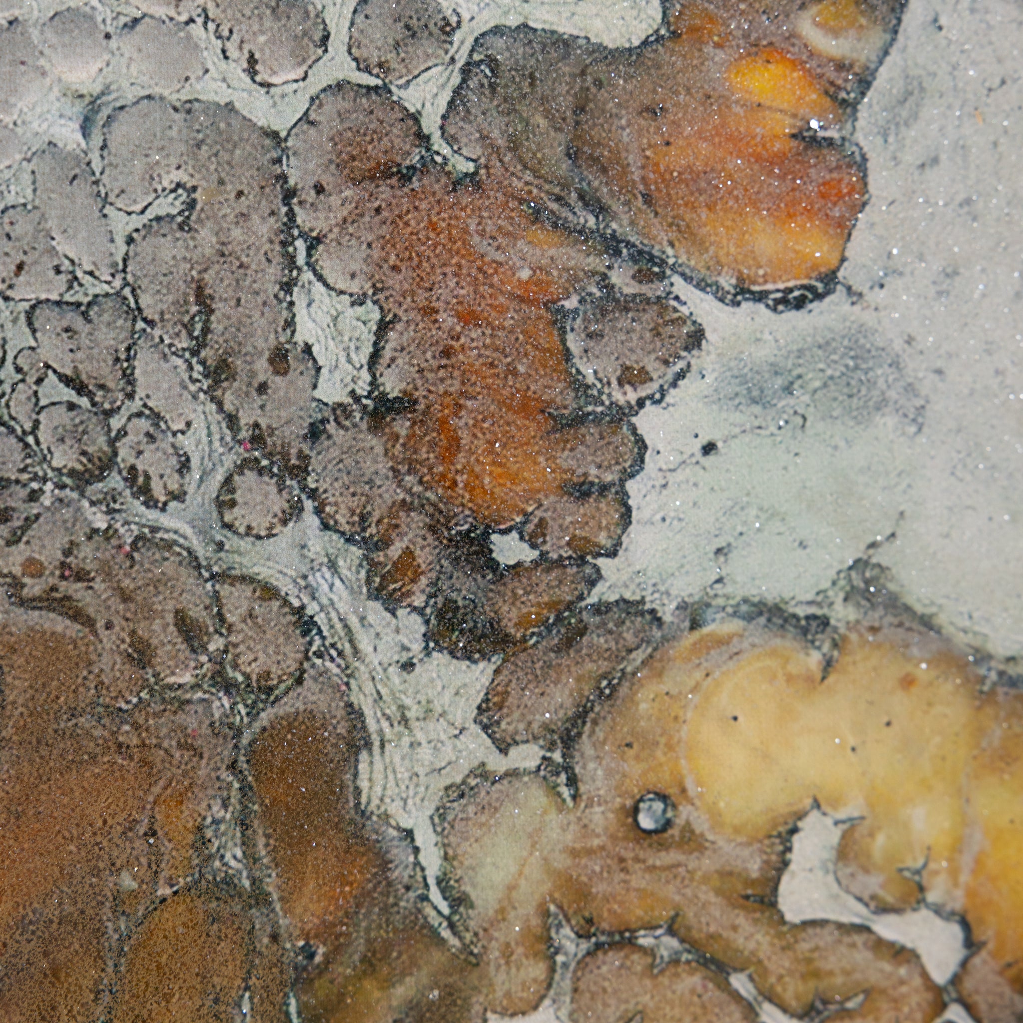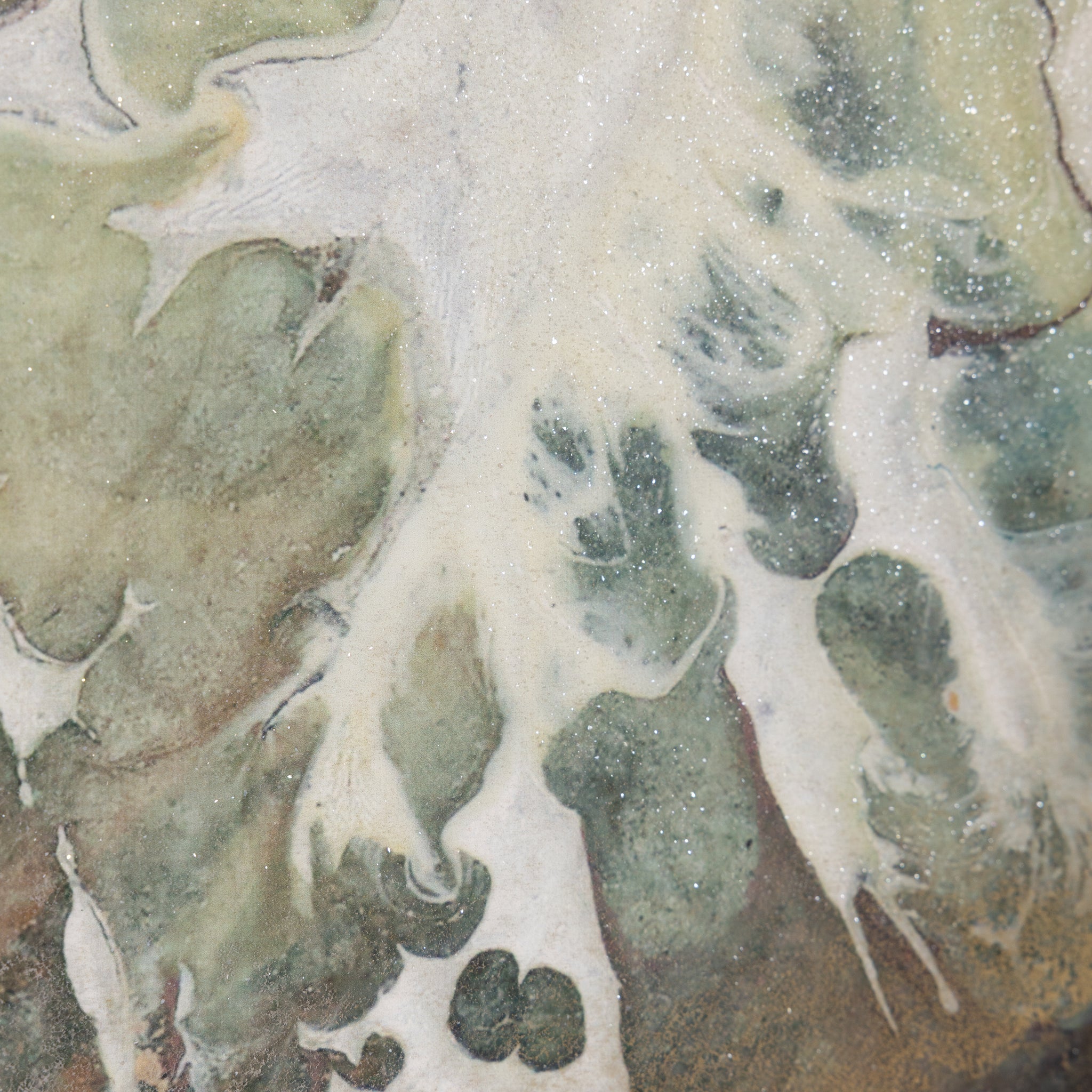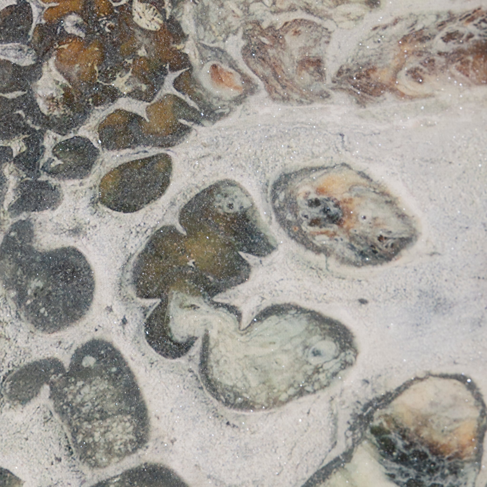 Dragons by artist Brendan Parker is a gorgeous abstract work printed on canvas that showcases a gorgeous ebb and flow in rich tones of gold, blue, and white. The piece is enhanced with a vitreous finish and metallic dust, lending a wealth of texture and visual depth. Displayed in a Champagne floater frame, this artwork is meant to be displayed in a vertical orientation only.