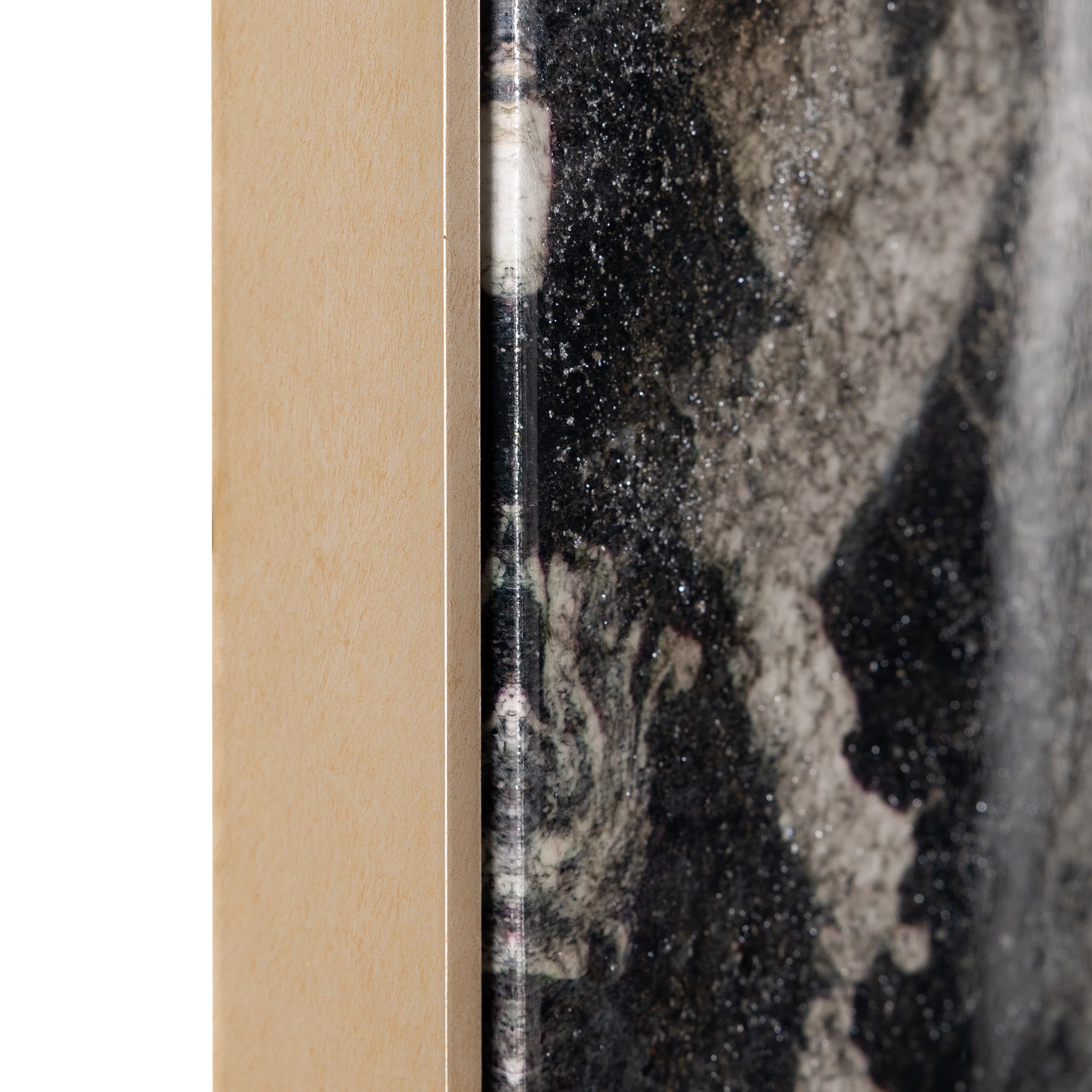 Hypnotic by artist Brendan Parker is a captivating abstract print on canvas that brings bold movement and contrast to any setting. Swirls of black, white, and brown create a dynamic sense of motion, heightened by a glossy vitreous finish and subtle metallic accents that add layers of texture. The artwork is presented in a champagne floater frame, offering a warm, refined edge that complements the striking composition.