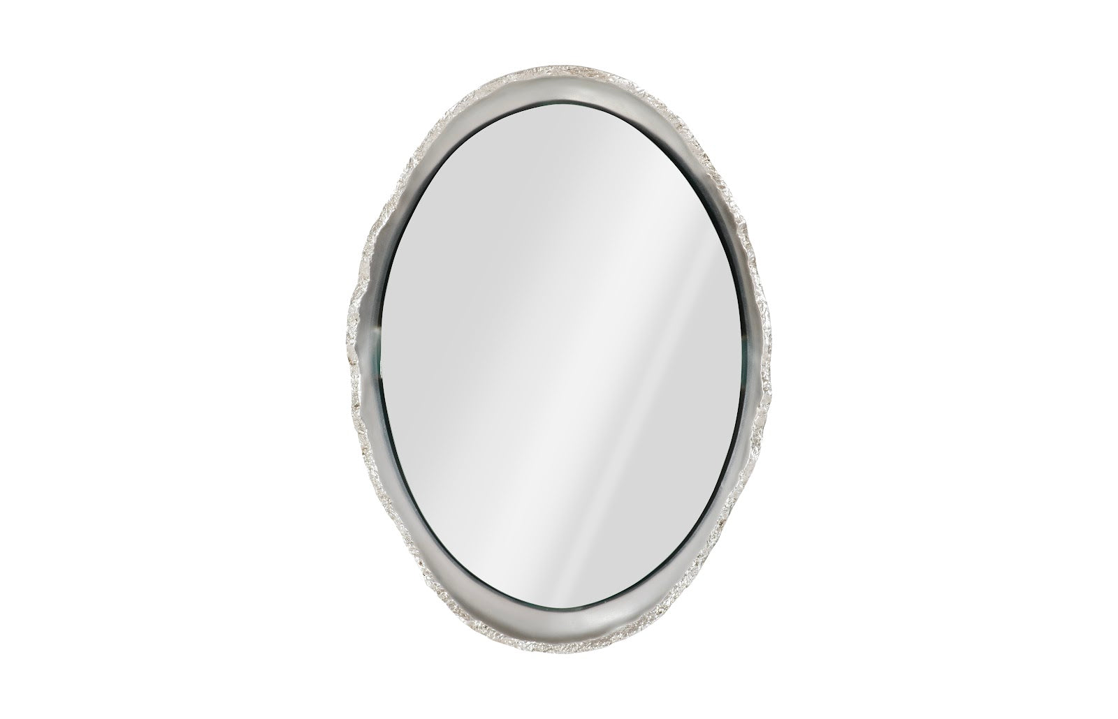 The Broken Egg Silver Mirror is one of a number of products in the Broken Egg Collection of decorative accessories, furniture, and wall art, which was realized when Phillips Collection collaborated with the talented designer Dann Foley. Made of composite with a luminous silver leaf frame, the fluted edge is a design move of note, as it cleverly imitates the furrowed edges on the decorative bowls, vase, and wall art. The dash of whimsy that this design detail brings to this silver decorative mirror adds personality to the clean contemporary style of this piece without interrupting its modern lines. We also offer this mirror in a gold version.