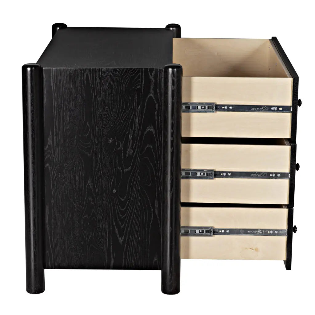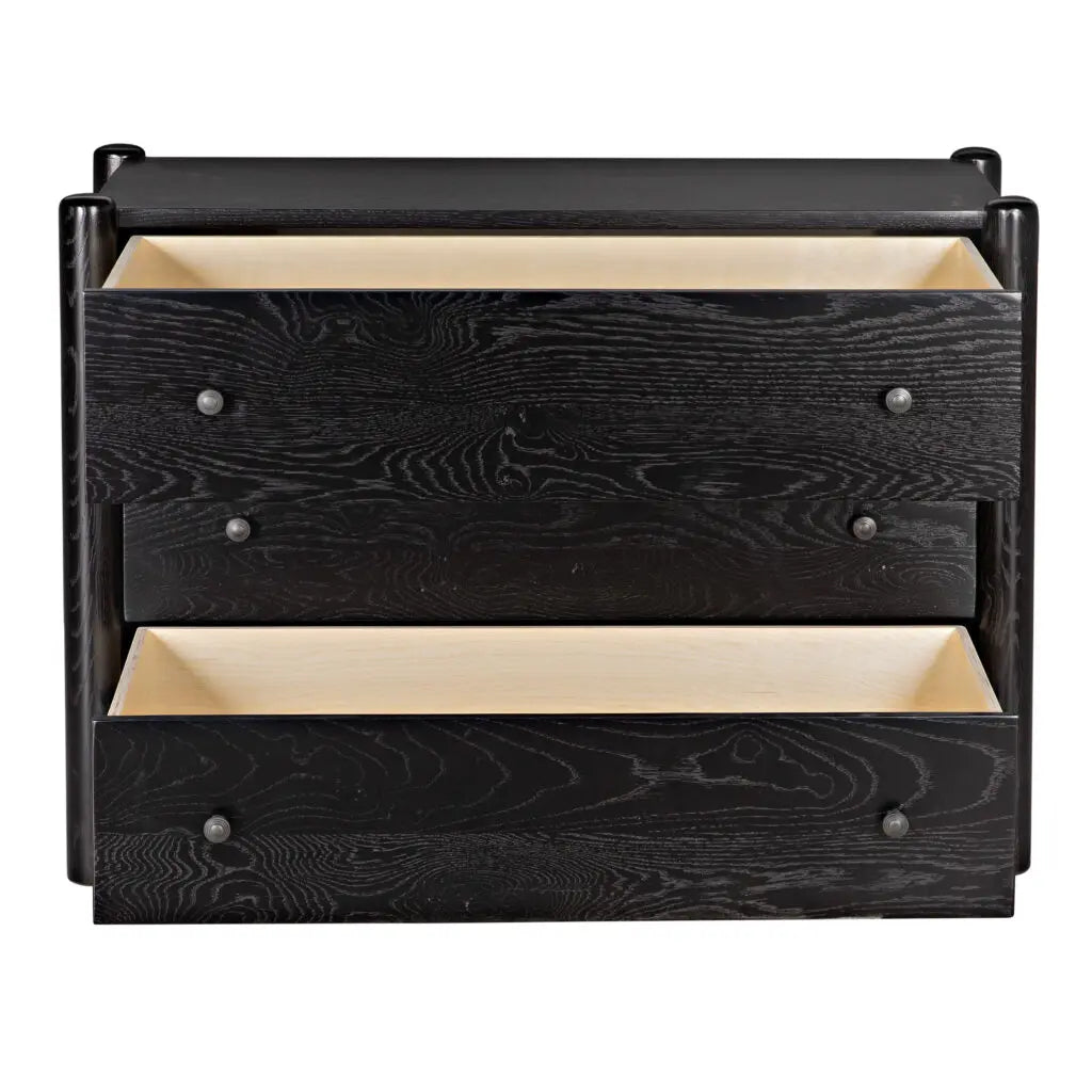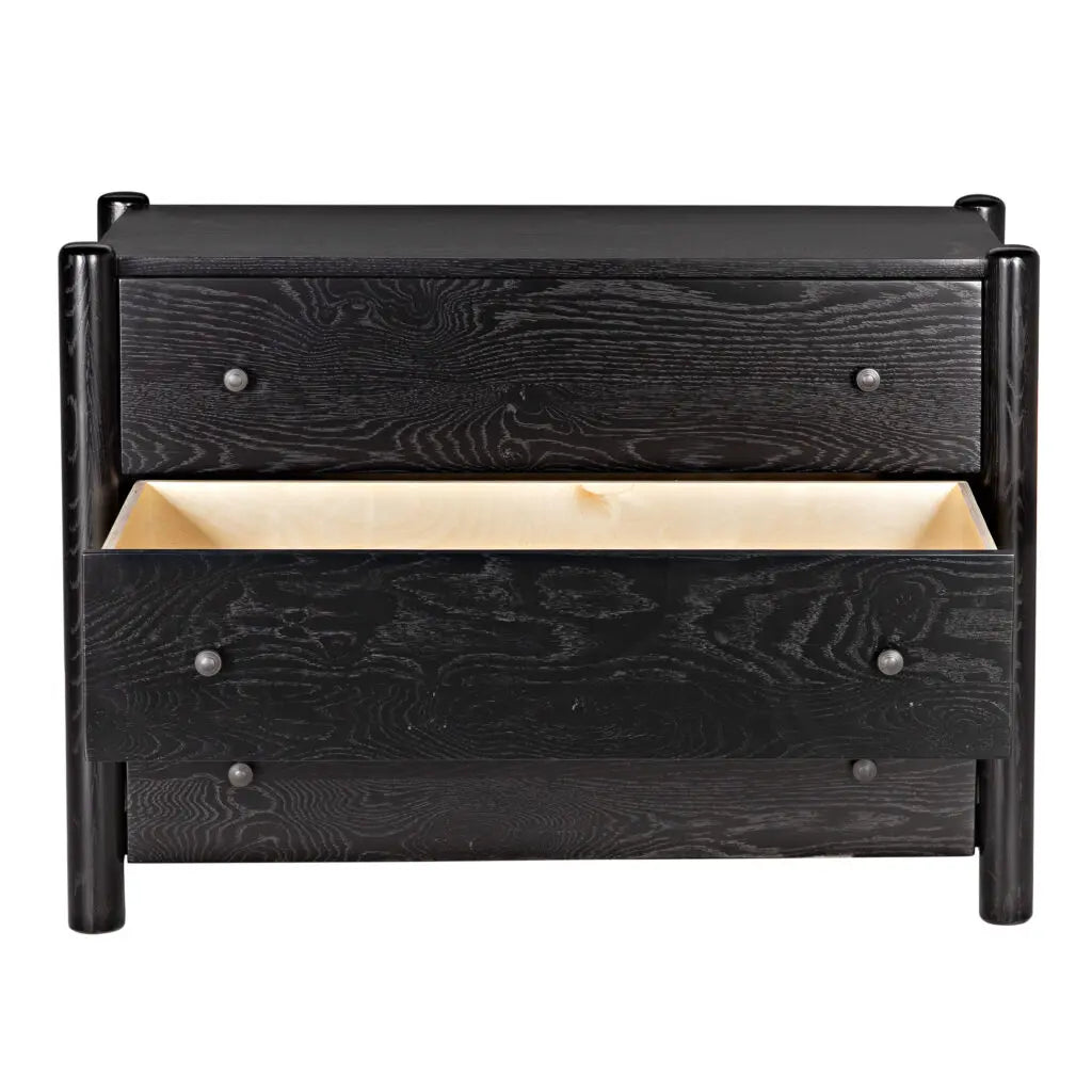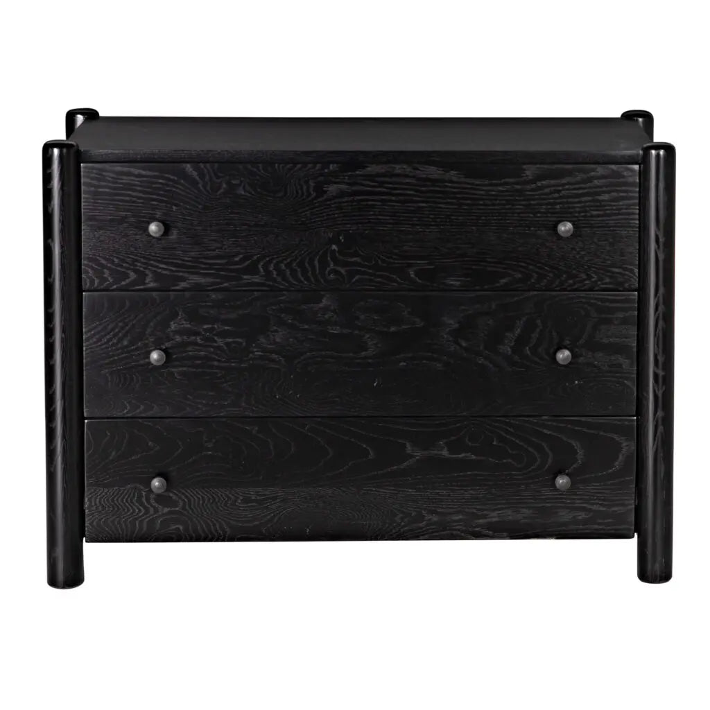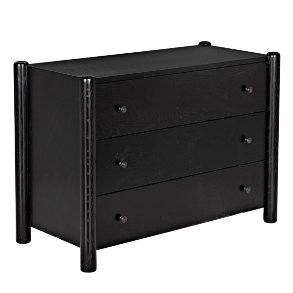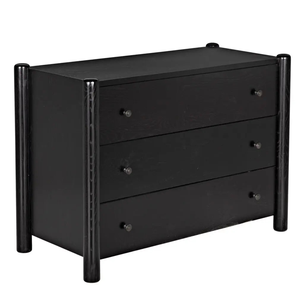 The Dillon Dresser is a handcrafted, three-drawer storage piece that blends rustic materials with a clean, industrial-inspired design. Made from Solid Rustic Oak, this dresser is valued for its rich wood grain and the natural character added by the deep Black finish.