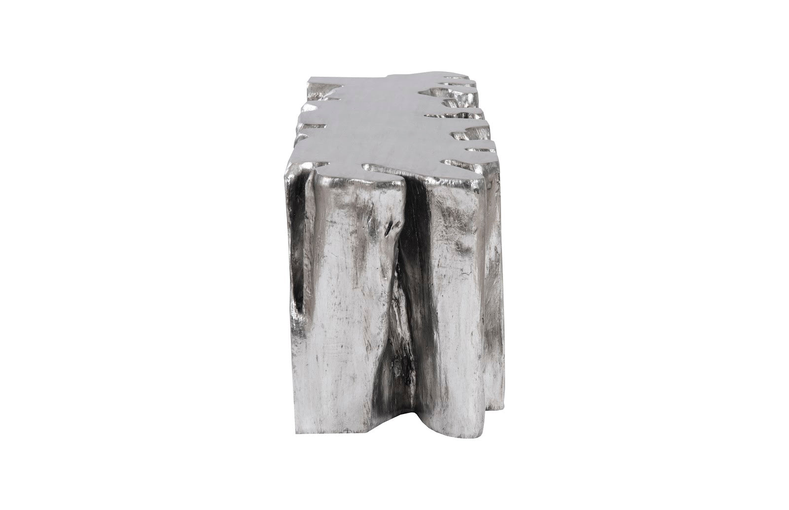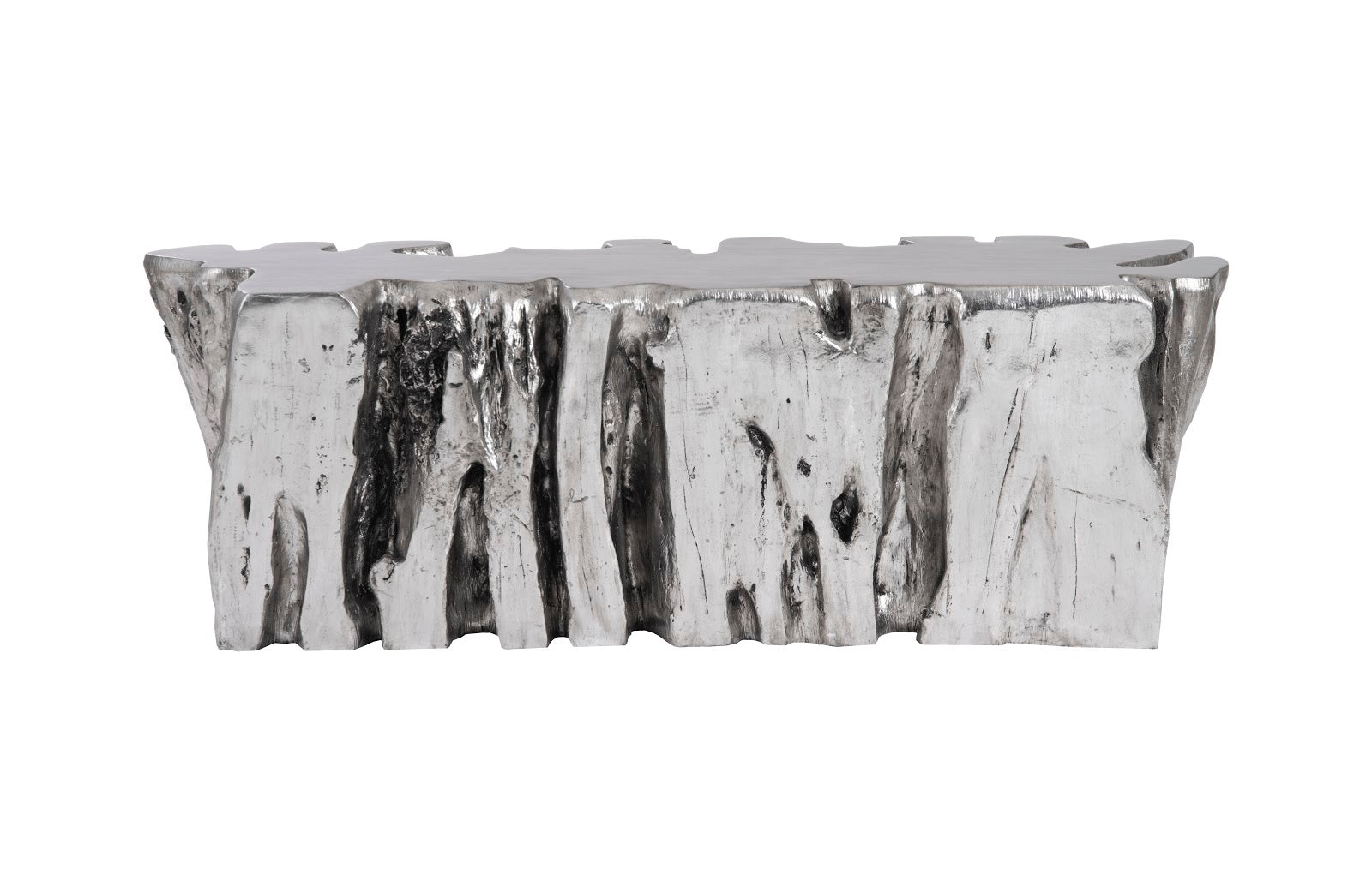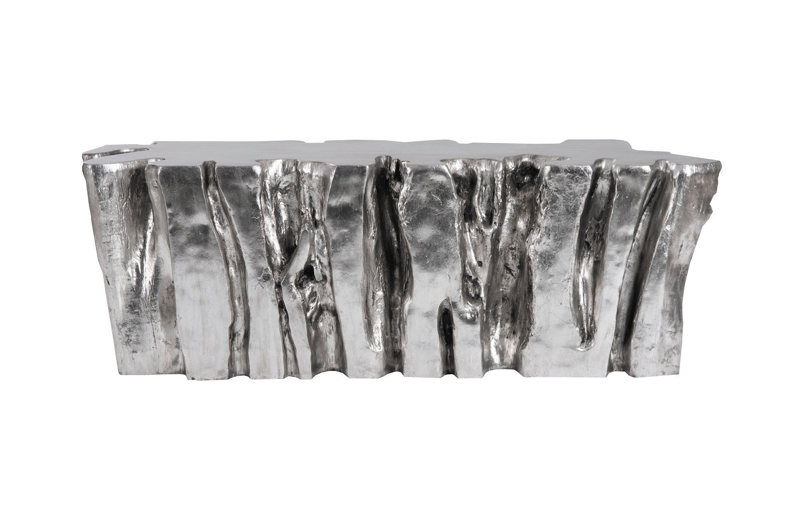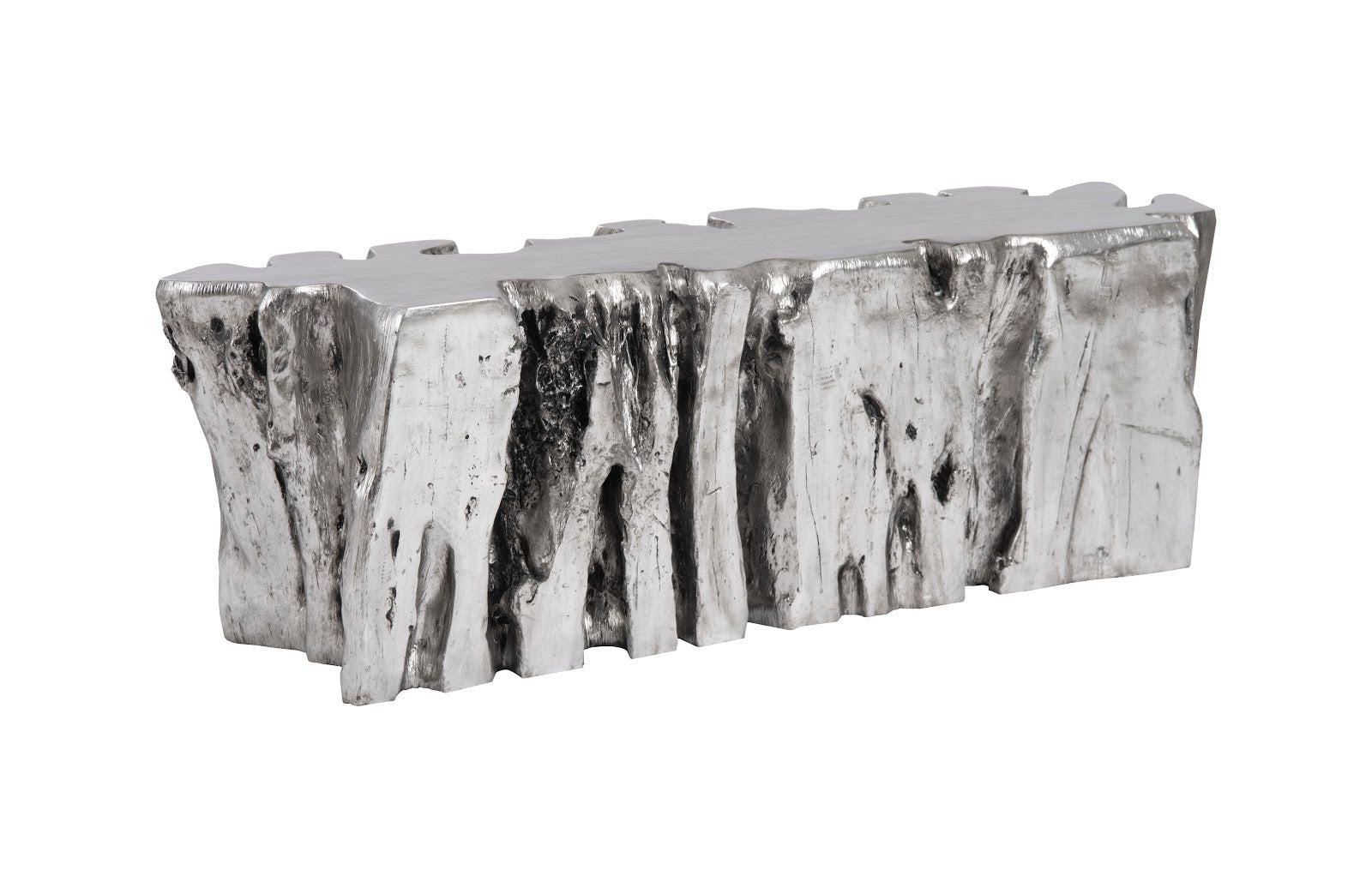 When we spot a shape that blows us away, the designers at Phillips Collection are not shy about bringing a bit of bling to elemental symbols we see in the woods. Case in point is our Freeform Silver Root Bench, which is made of composite in a luminous silver leaf finish. Cast from one of our favorite Origins pieces of wood, this tree-trunk bench personifies our ethos of modern organic. By treating the surface of this log bench to such a brilliant finish, we’ve created a chic piece for contemporary interiors. Just imagine how perfectly it will fit into the décor of a modern apartment or a sleek coastal condo! We offer a number of pieces and finishes in the collection that are equally stunning.