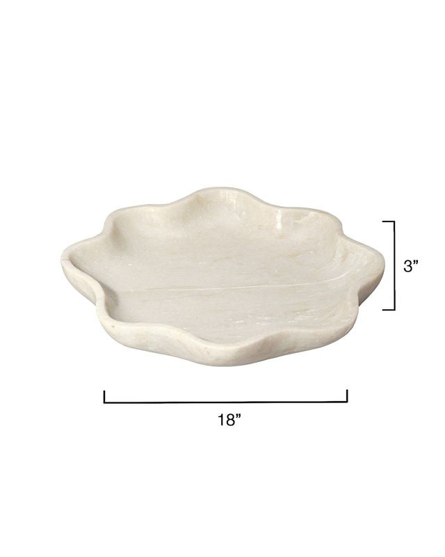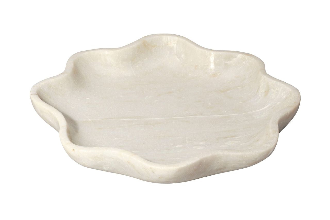 Hand-carved from natural marble, this scalloped bowl embodies refined simplicity and timeless elegance. Each piece is truly one of a kind, revealing subtle variations in tone and delicate veining that celebrate the stone’s natural beauty. With its soft curves and cool, tactile surface, it serves beautifully as a centerpiece, catchall, or sculptural accent, adding quiet sophistication to consoles, coffee tables, or kitchen counters.
