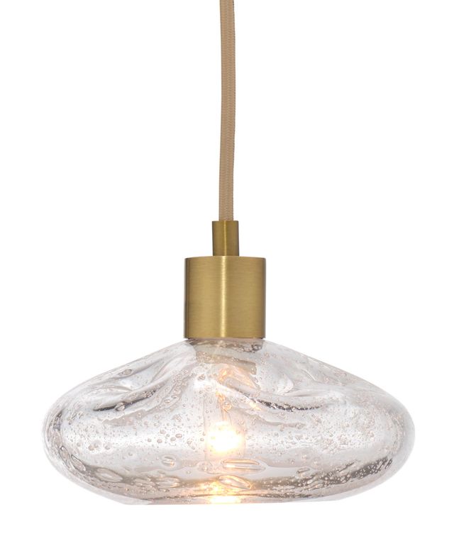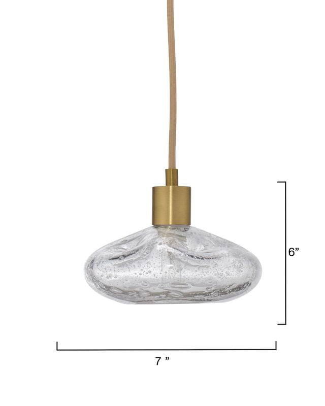 Light and airy, this pendant’s composition is simple: a single hand-blown glass shade, warm antiqued brass iron, and plenty of style. The minimalistic esthetic gets maximum impact when you hang them in multiples, in a line over a kitchen island, or in various lengths over a dining table. As always in designs this simple, the craftsmanship is on full display. Each of ours is artisan made and hand blown, and no two will be identical.