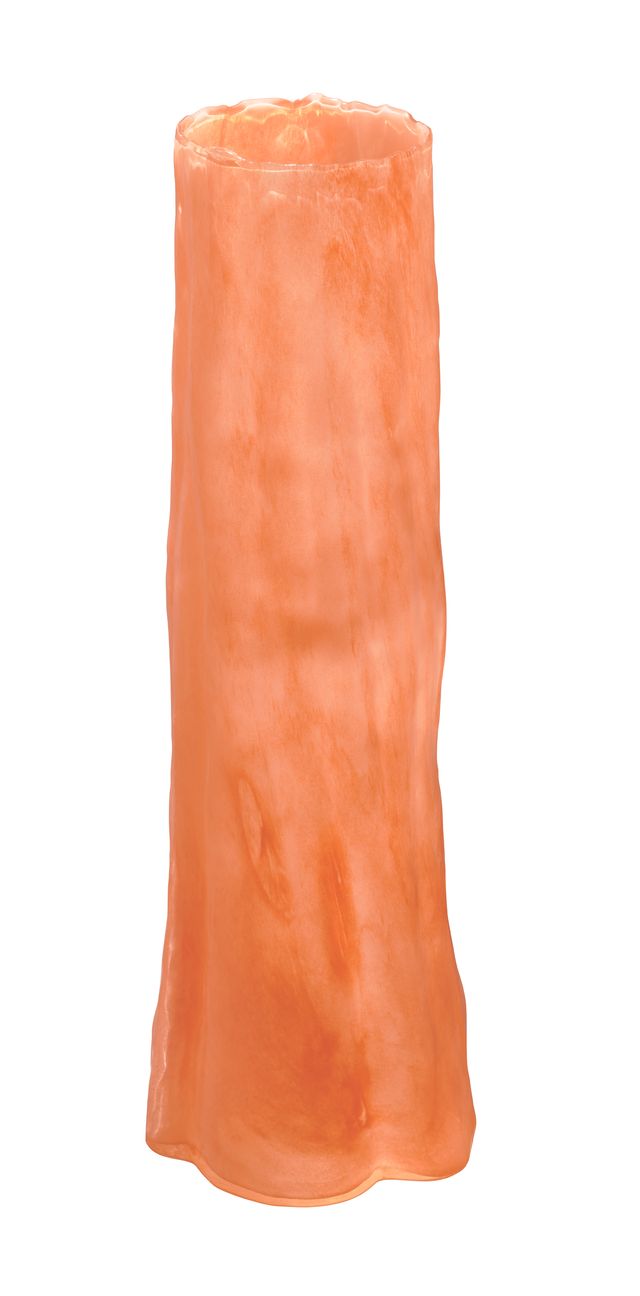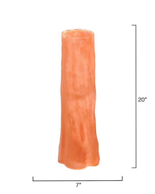 Expertly handcrafted of colored glass, the shape and nuanced details of this tall vase masterfully evoke the majesty of a single strong sequoia tree. Tall and slim, it is ideal for use with long stemmed florals.