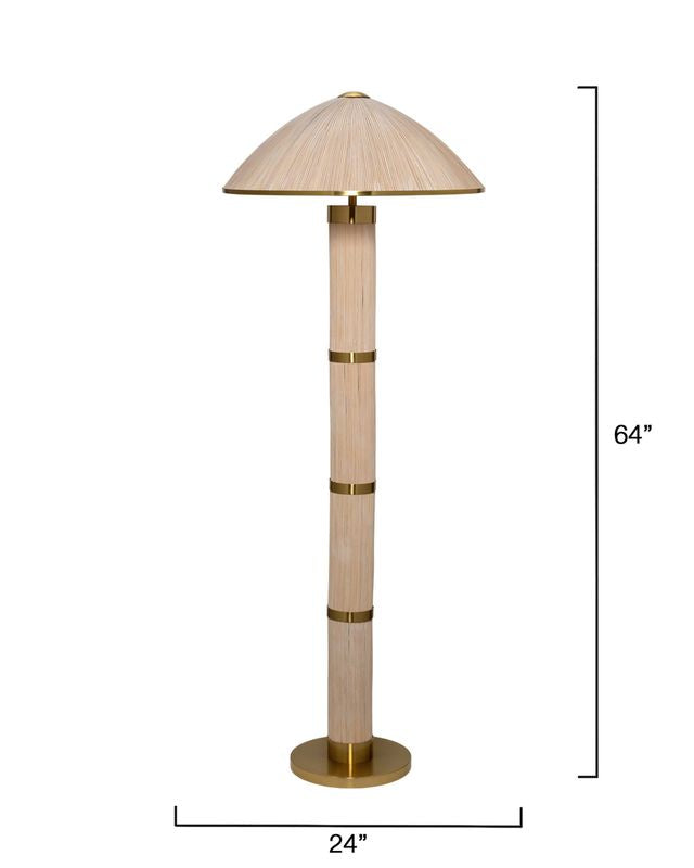 These Asian inspired, artisan-crafted floor lamps bring the beauty of far-away landscapes to your interiors. Here, the organic nature of whitewashed rattan is paired with the luxe look of gleaming polished brass and topped with a similarly trimmed dome shade. The finishes contrast strikingly, resulting in a timeless look to help you create your own at home oasis.