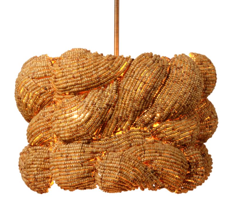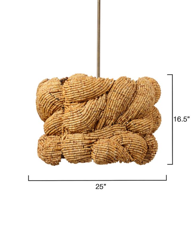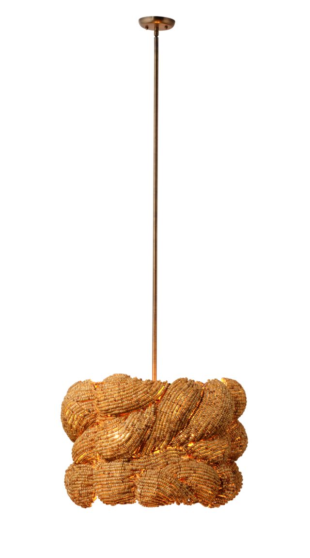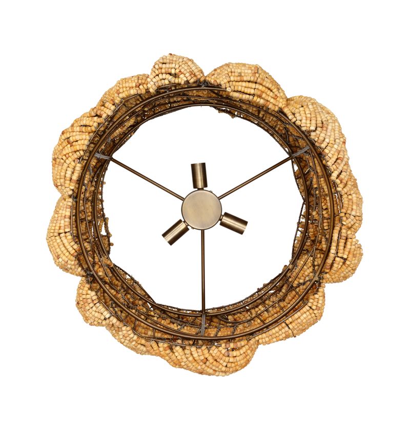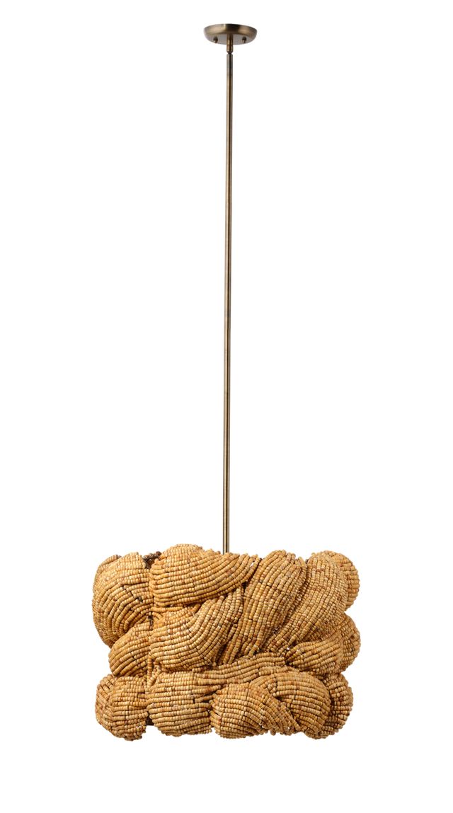 Handcrafted from natural mango wood beads and antique brass, this artisan chandelier adds texture, warmth, and a sense of natural sophistication to dining areas, entryways, or living spaces. Each bead is individually shaped and polished, revealing subtle variations that celebrate the beauty of natural materials. Its soft illumination and graceful silhouette create an inviting ambiance that blends timeless craftsmanship with quiet, understated luxury.