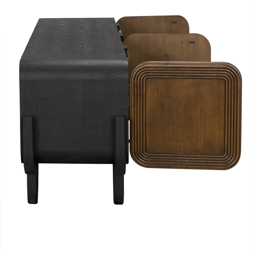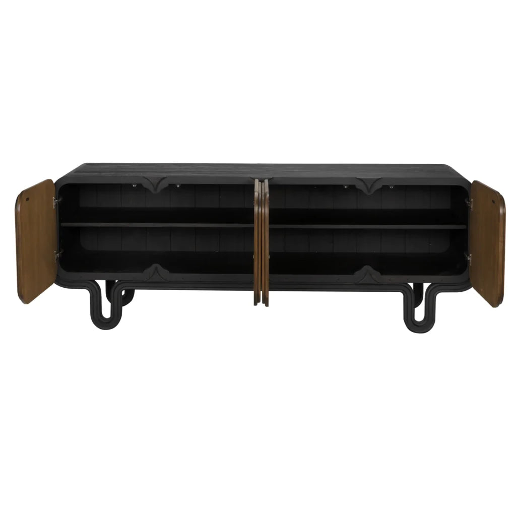 The Solomon Credenza is a standout piece of furniture known for its blend of Mid-Century Modern aesthetics and industrial craftsmanship. It is often favored by interior designers for its "floating" appearance and high-end material contrast.