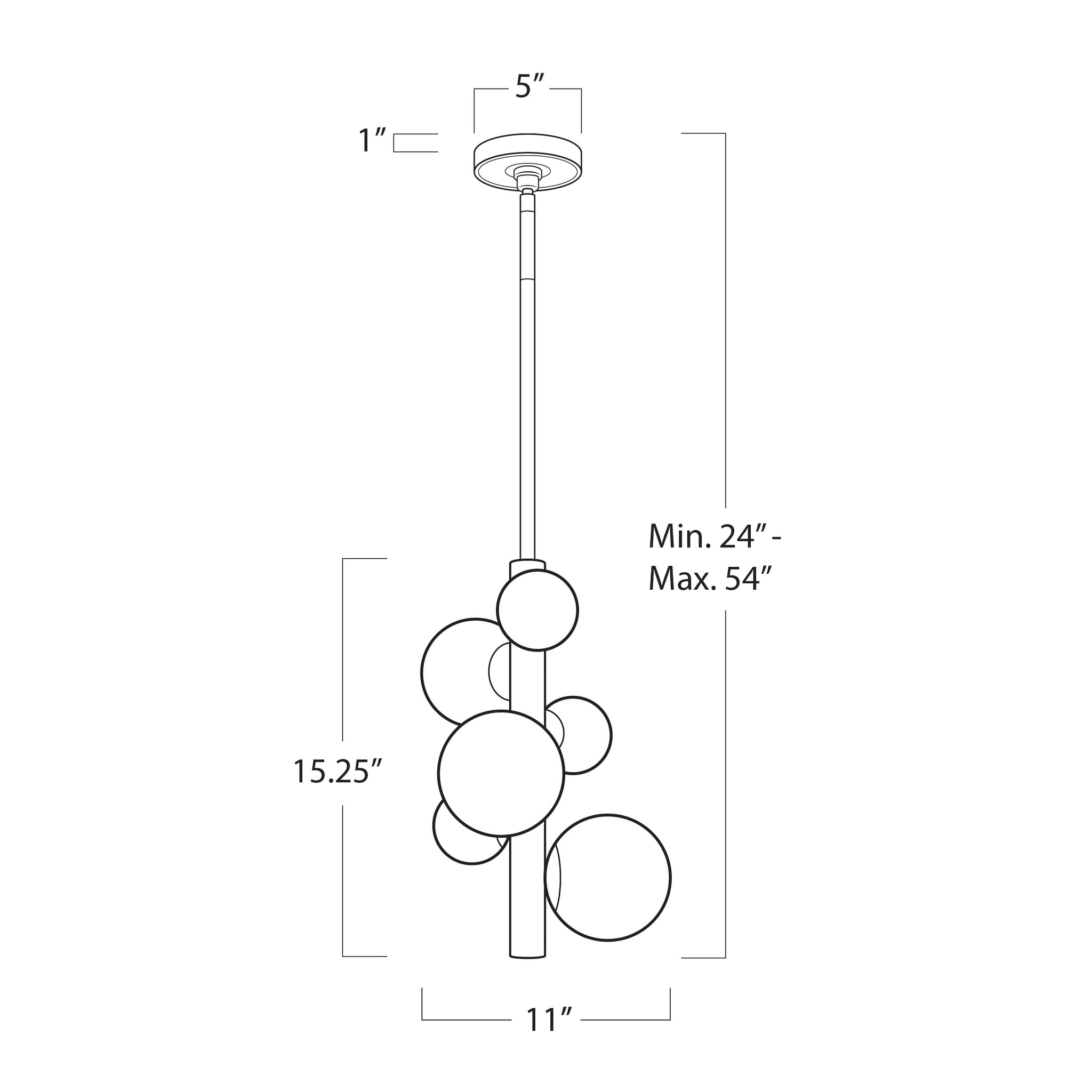 Natural alabaster stone orbs dance around a metal base, adding a spectacular sculptural element to your home. The Styx Vertical Pendant is elegant, modern, and when illuminated, has a special ambiance that only alabaster can create.