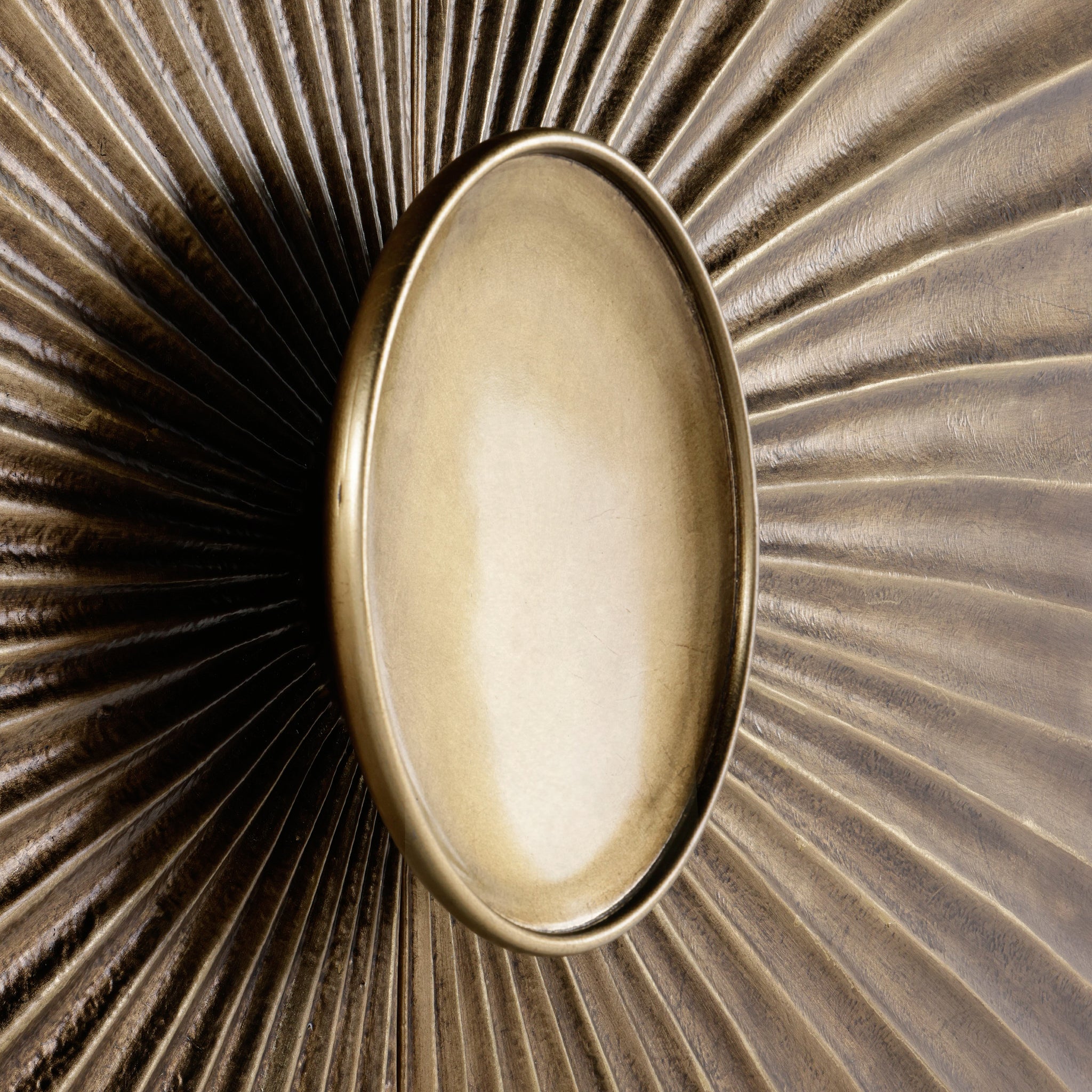 The Trance Four-Door Sideboard is a mesmerizing piece that leaves a lasting impression in any interior space. Crafted from eucalyptus wood in a Monopoli finish, the piece features a contemporary silhouette with sculptural, tapered legs. Four push-latch doors showcase a hypnotic display of swirling, dimensional lines, elevating the look with a striking sense of depth. The spiraling motif converges at a round aluminum handle in Evora Gold. This sideboard features three interior compartments, each with a single adjustable shelf.