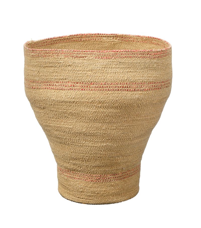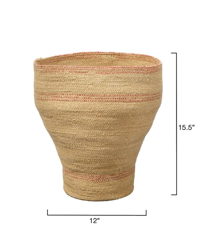 Expertly crafted from finely woven natural seagrass, this lovely decorative basket adds a serene beauty to modern interiors from coastline to countryside. Distinguished by their unstructured shape and a soft neutral palette enhanced with colored accents, they're useful in any room. Fill one with fluffy rolled towels to elevate a spa-inspired bath, with kindling beside the hearth, or with toys for a stylish storage solution. Each is completely handcrafted, and as such no two will be identical.
